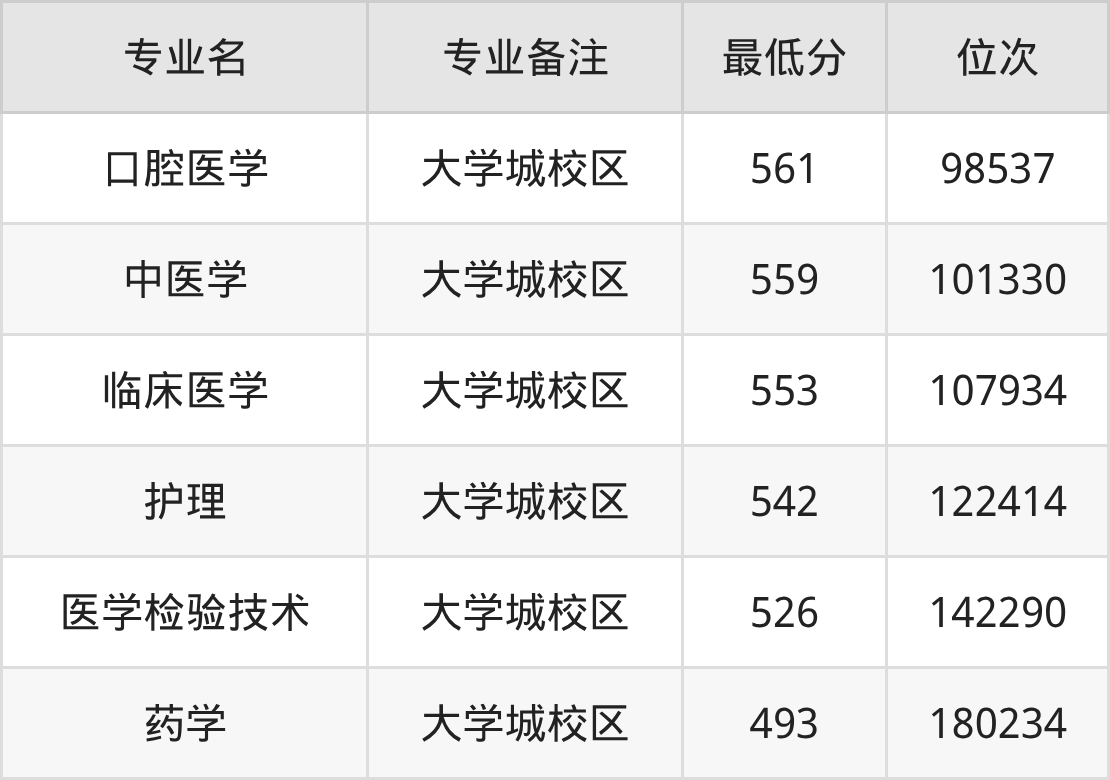 1、口腔医学(大学城校区):561分、位次98537名;