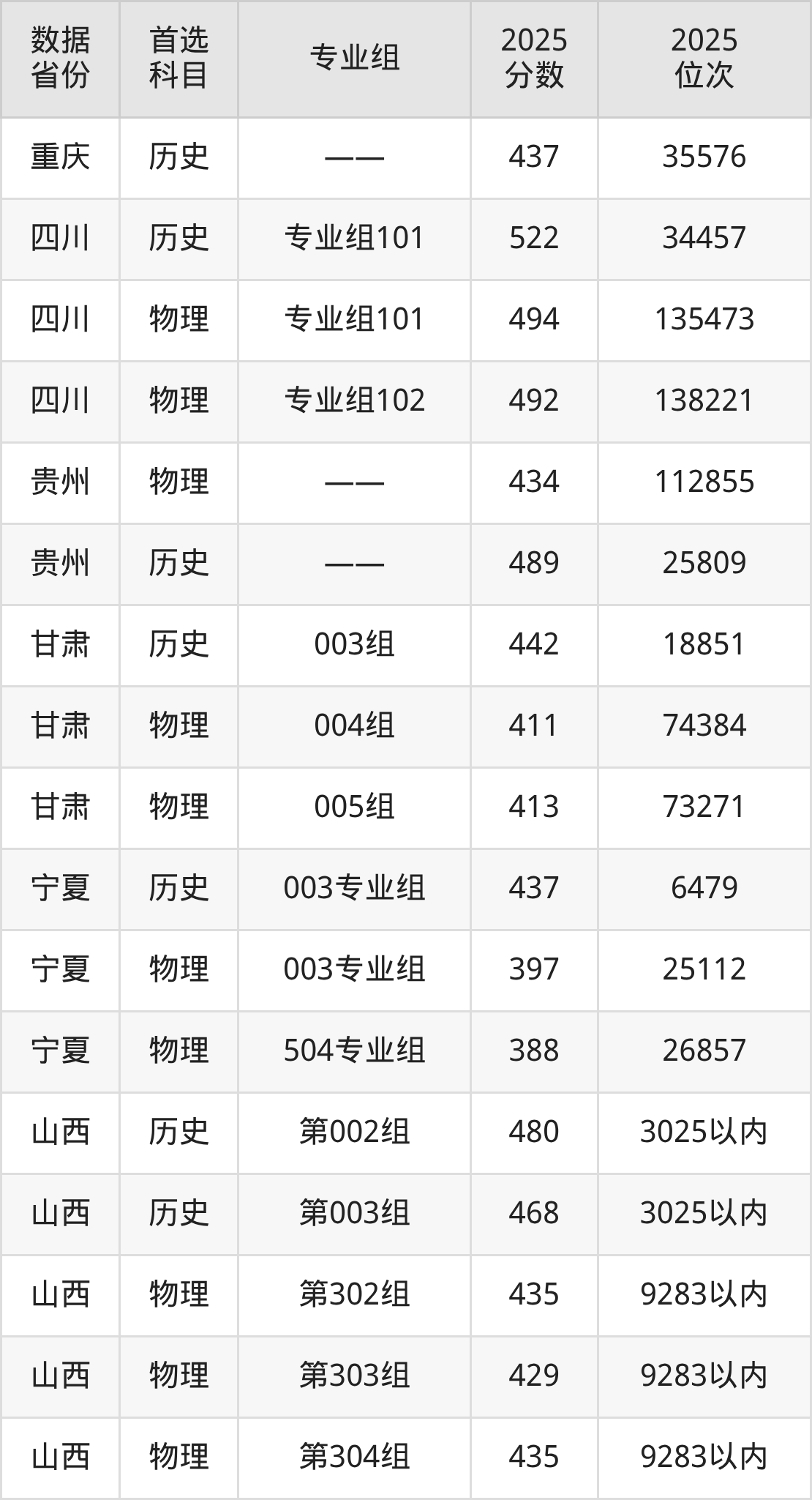 宁夏:历史组437分、物理组388分;