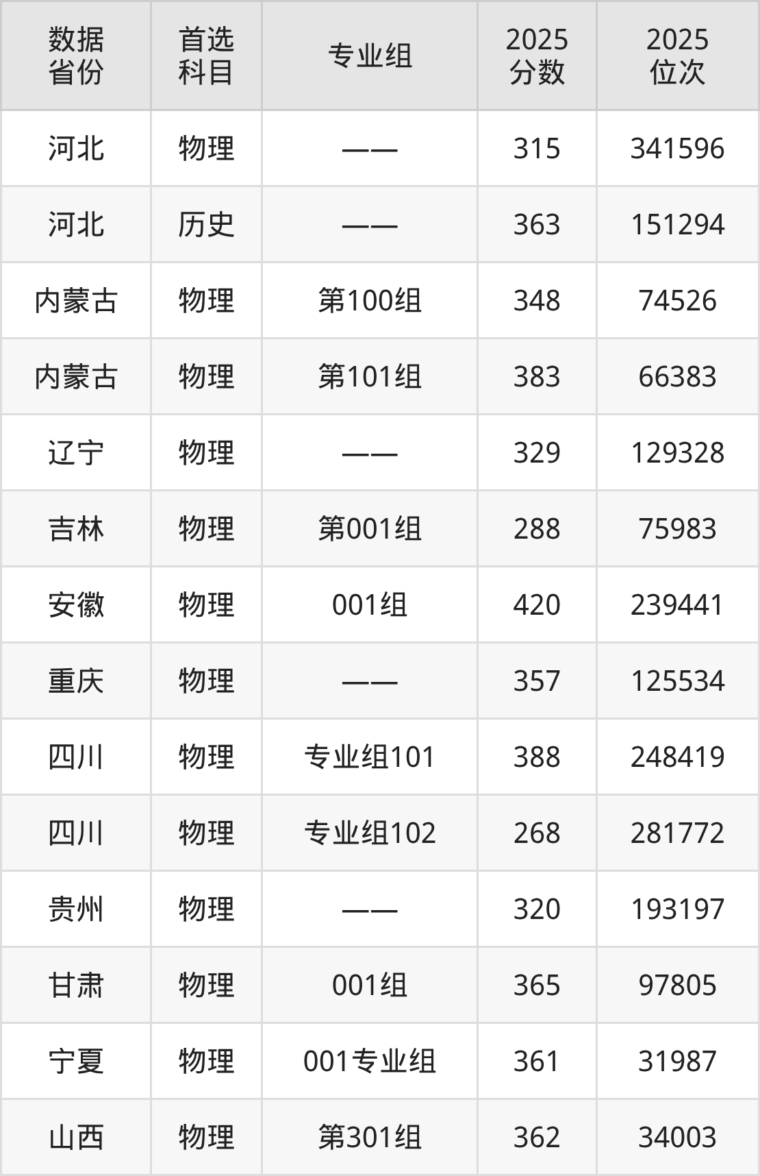 内蒙古:物理组348分;