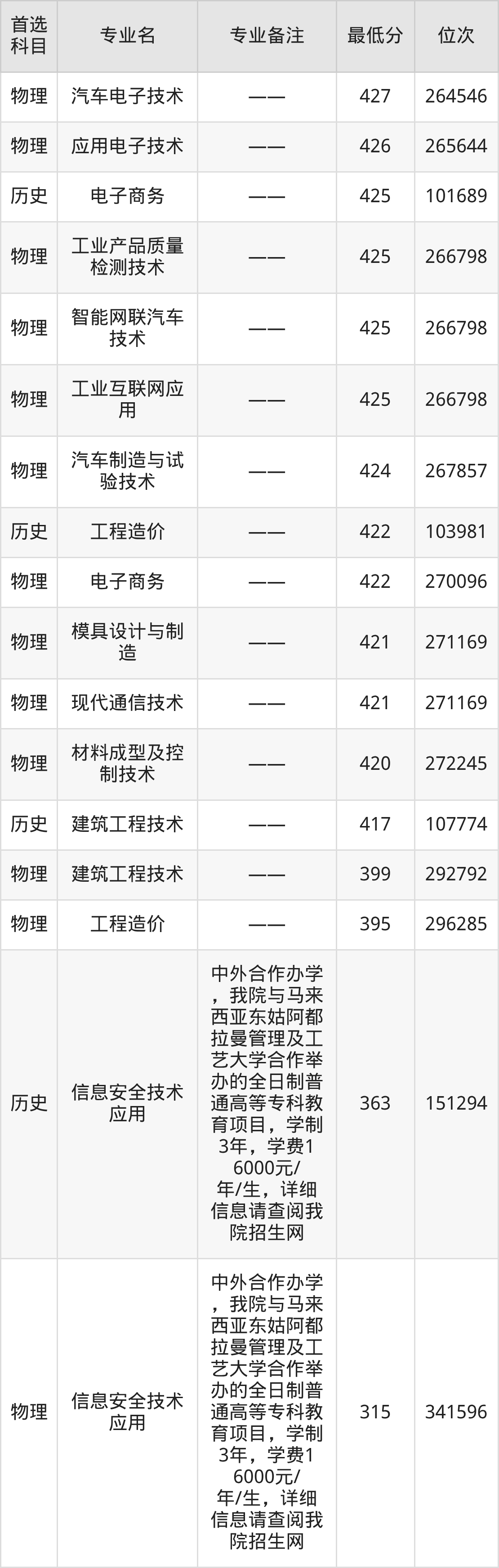| 历史 | 信息安全技术 应用 | 中外合作办学 | 20 |