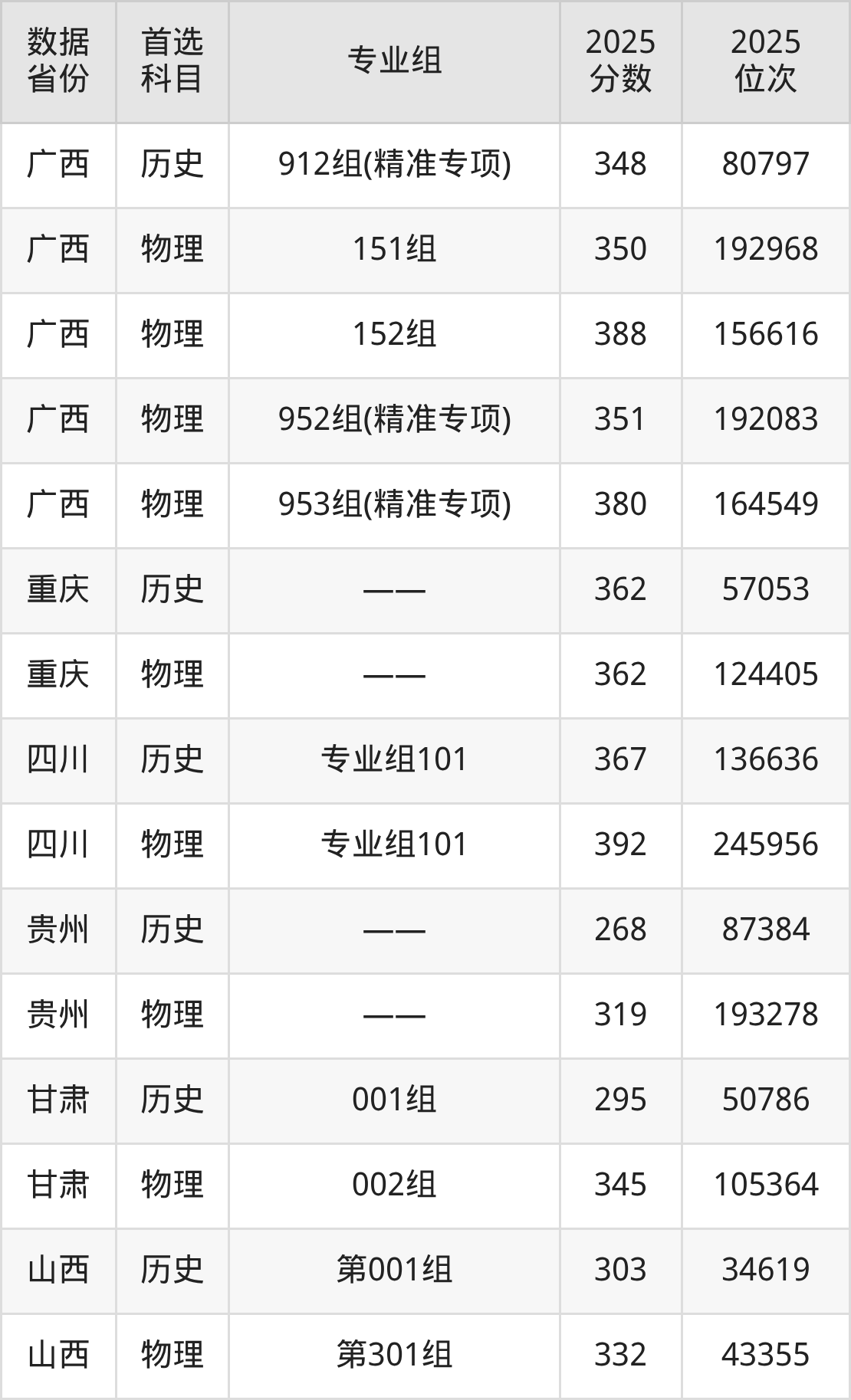 山西:历史组303分、物理组332分。