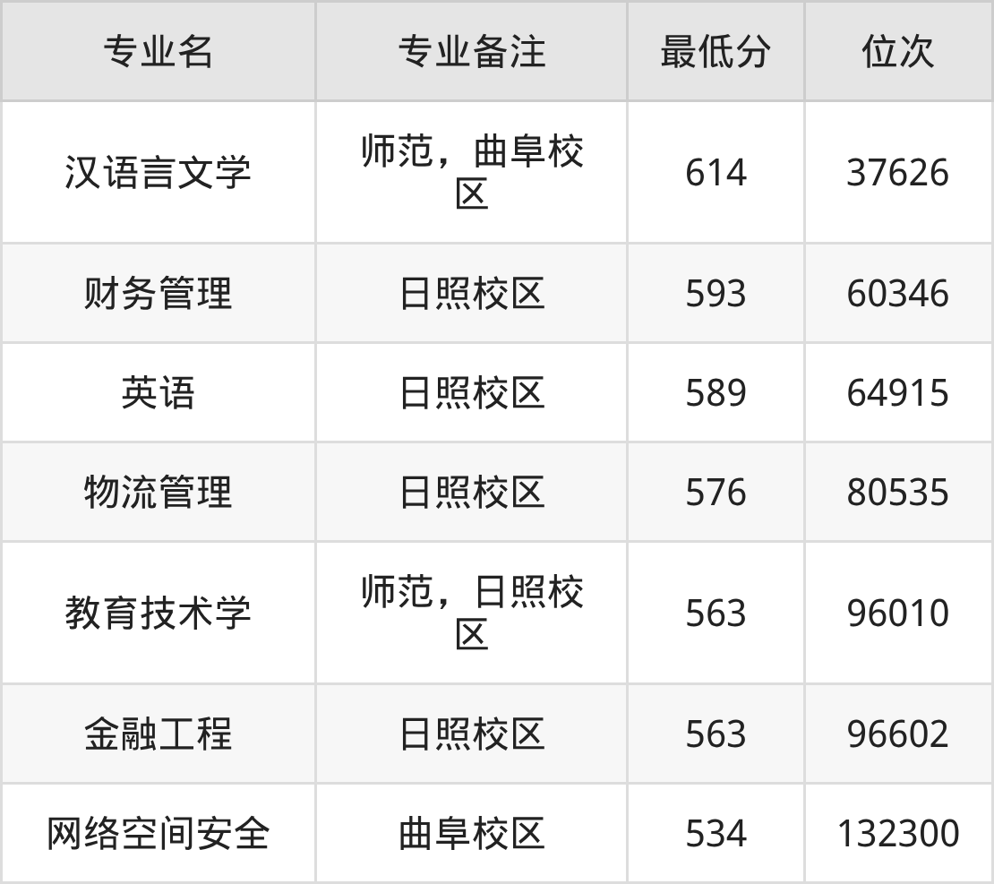 二、曲阜师范大学各专业最低分