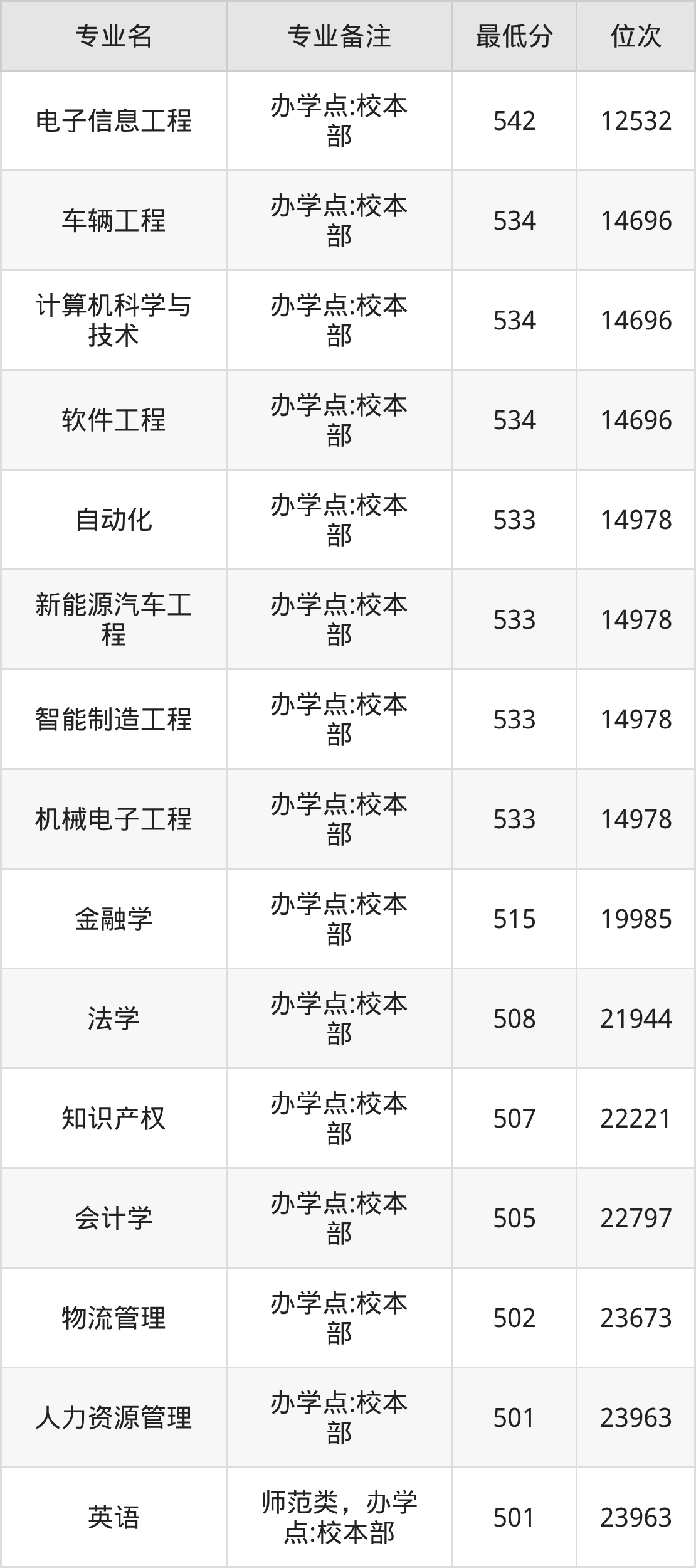 2、车辆工程(办学点:校本部):534分、位次14696名;