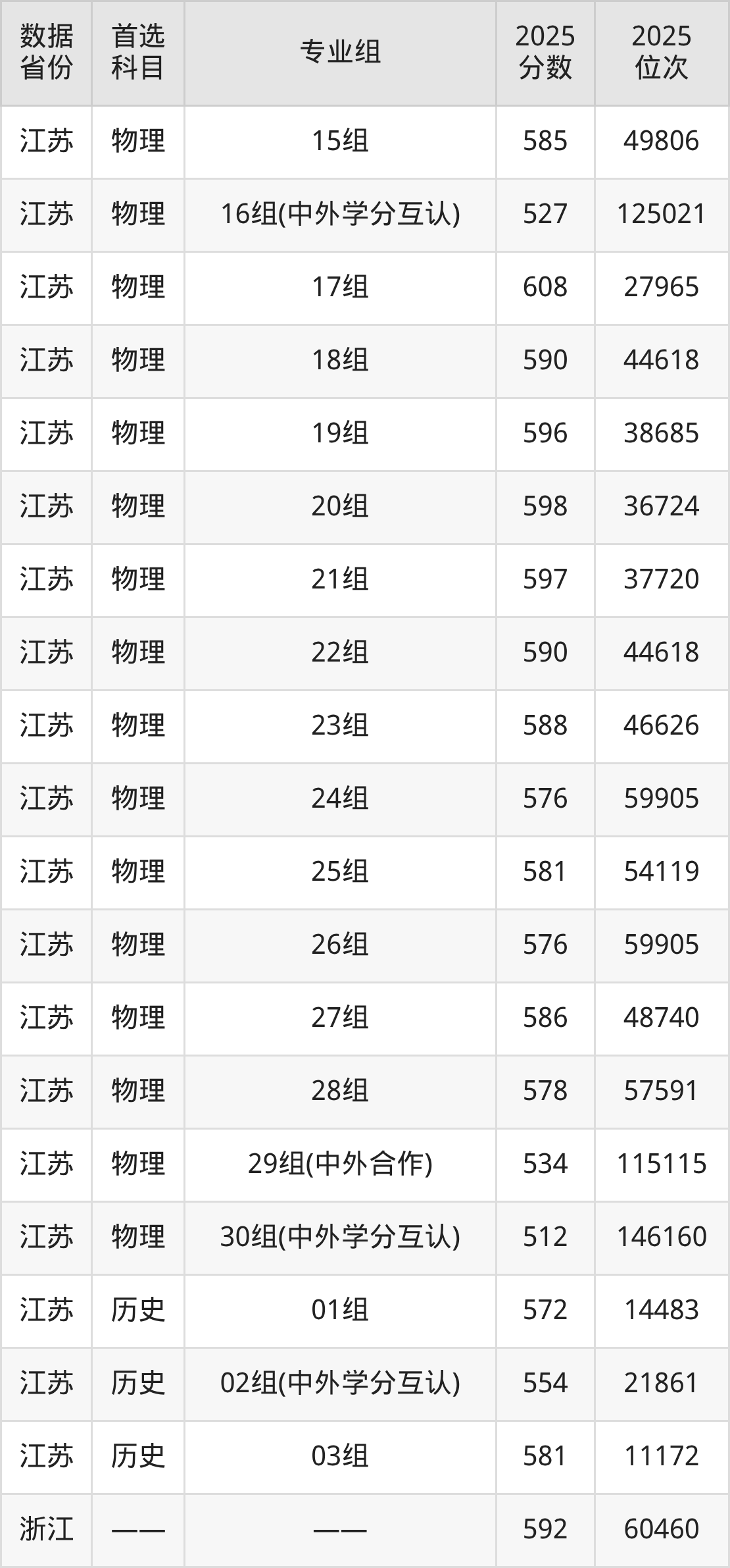 下面是江苏大学各省最低分汇总,各专业组录取分数线可参考下方图片: