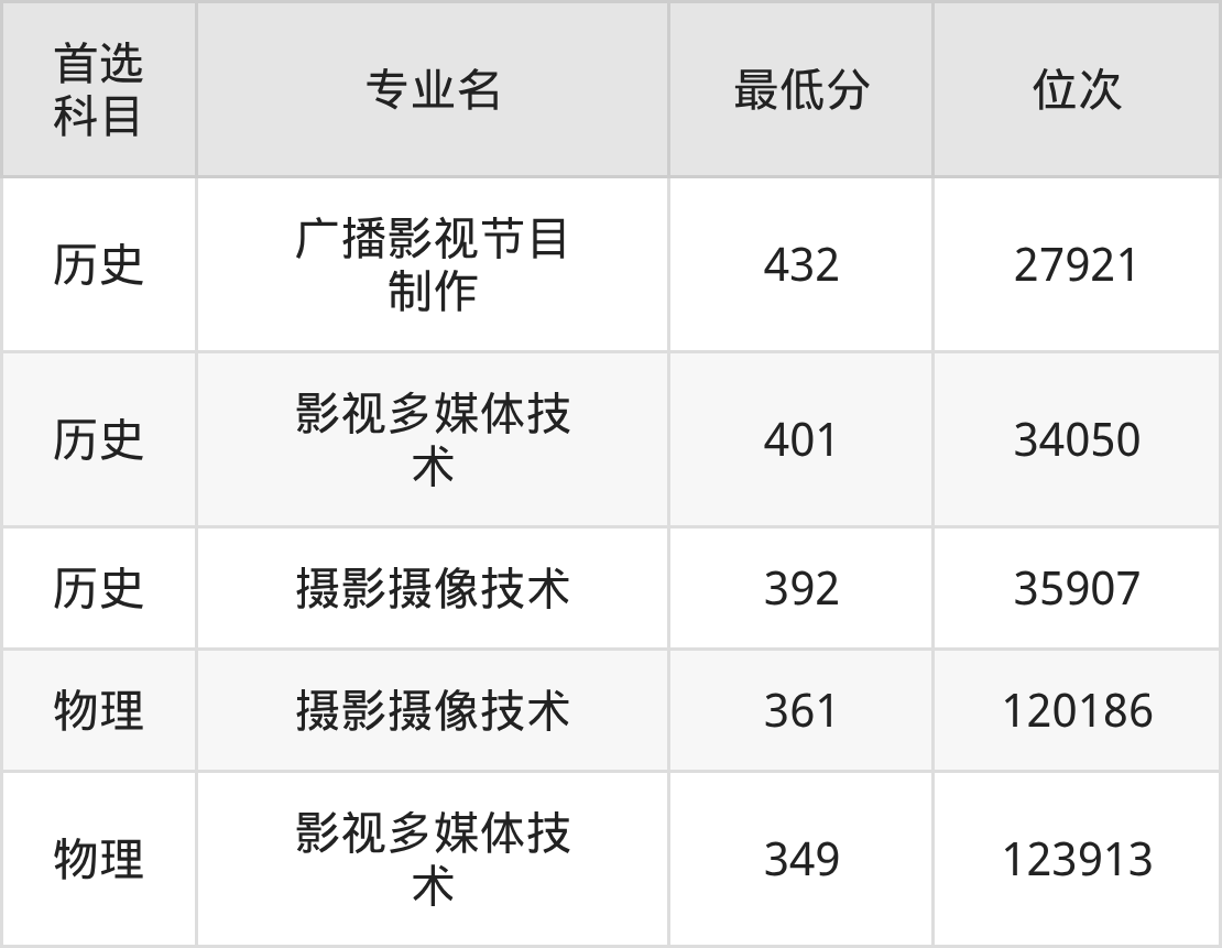 2、影视多媒体技术:401分(历史类)、位次34050名;