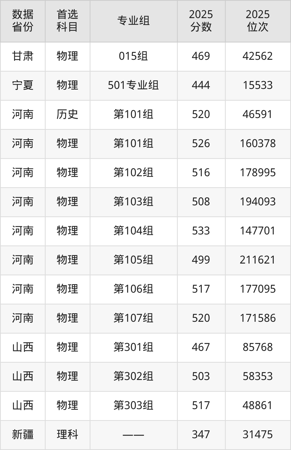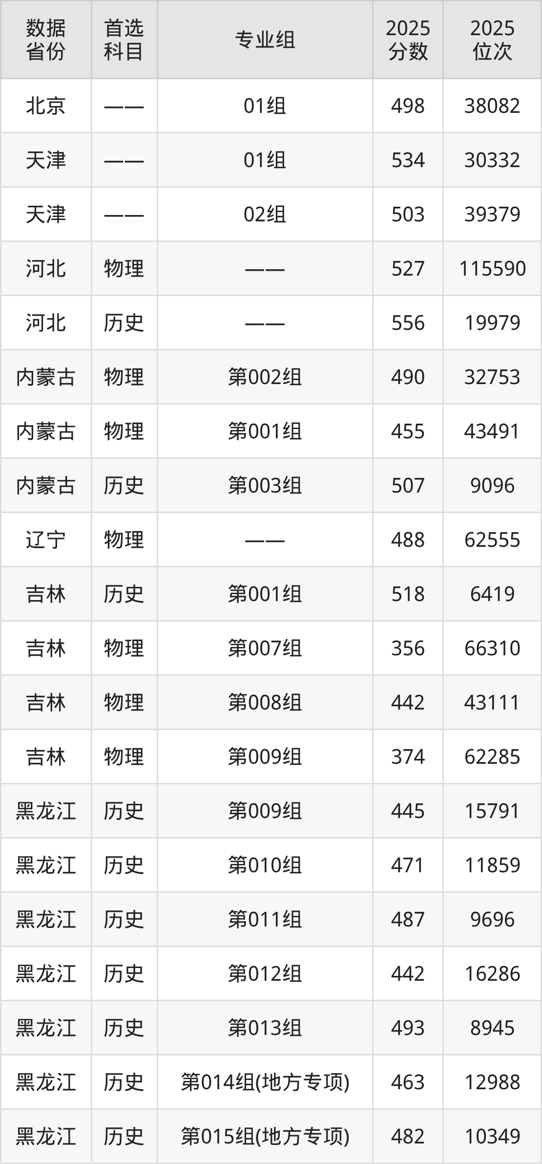 2025年佳木斯大学全国录取分数线最低是347分,最高是575分,平均分在487分左右。在多数地区录取最低分均超过370分。低于370分能上的地区只有吉林和新疆,高于平均值较多的是河北、江西、四川和河南等地,均有专业组最低分在520分及以上。