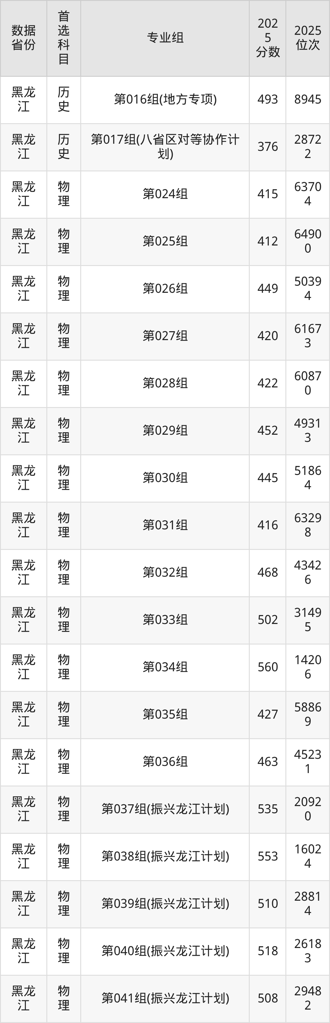 | 物理 | 临床医学 | 振兴龙江计划 | 6 |