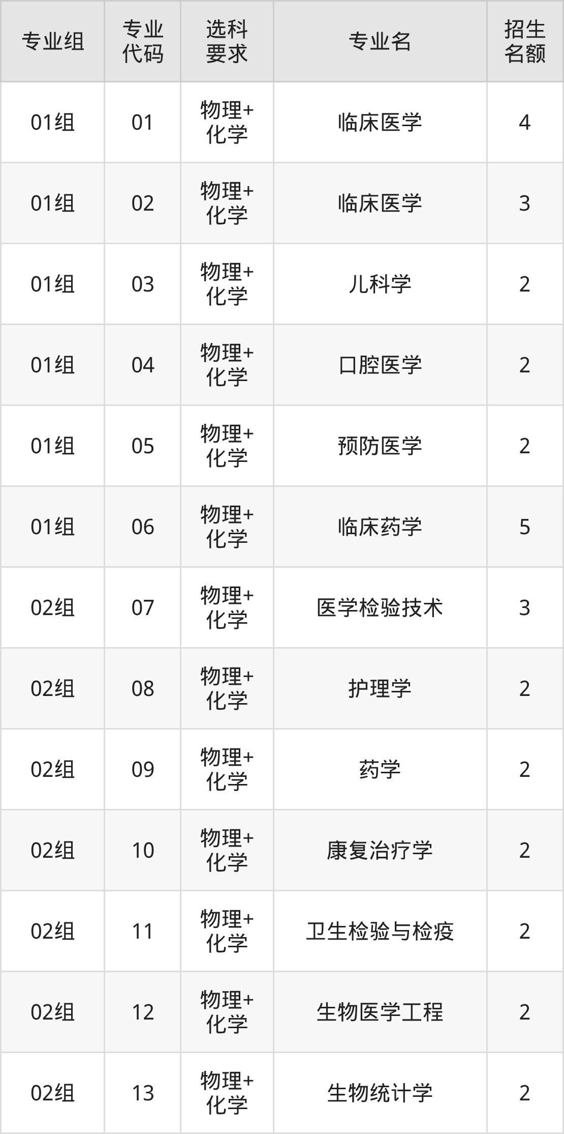 2025年南京医科大学在天津市本科批A段招生中,总计划人数为33人,招生专业有12个,包括临床医学(7人)、儿科学(2人)、口腔医学(2人)、预防医学(2人)等。