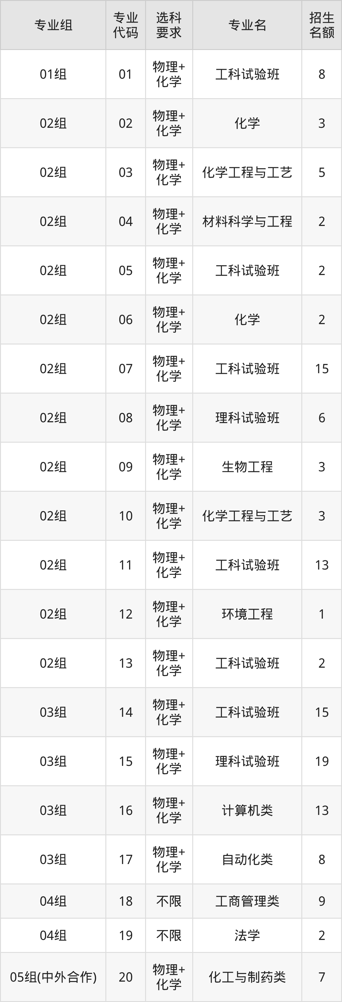 2025年北京化工大学在天津市本科批A段招生中,总计划人数为150人,招生专业有14个,包括工科试验班(55人)、化学(5人)、化学工程与工艺(8人)、材料科学与工程(2人)等。其中化工与制药类、生物工程、机械设计制造及其自动化为中外合作办学,学费依次是60000元、70000元。