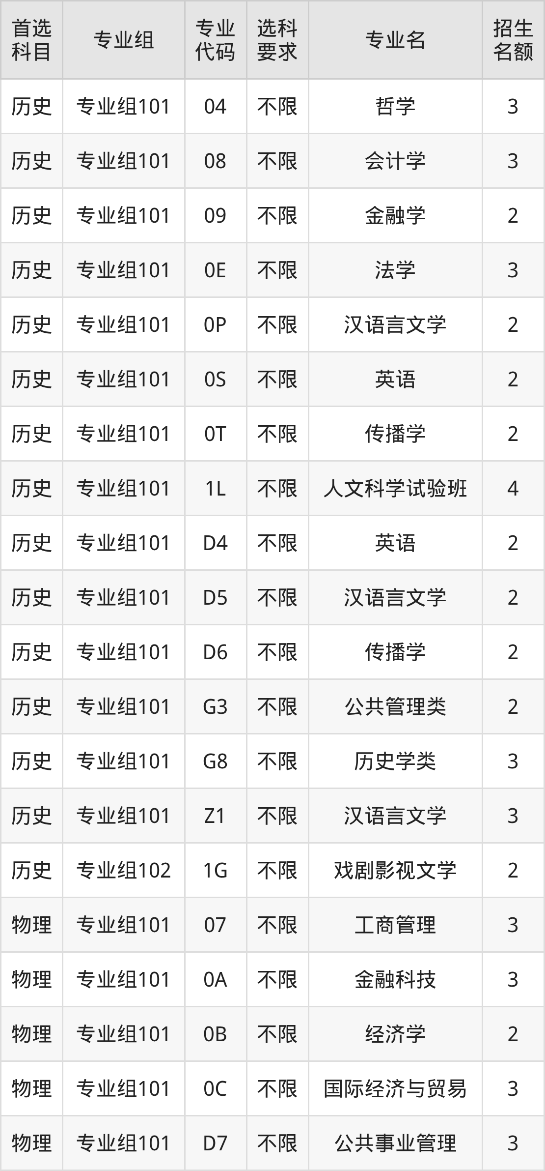 | 历史 | 专业组101 | 640 | 498 |