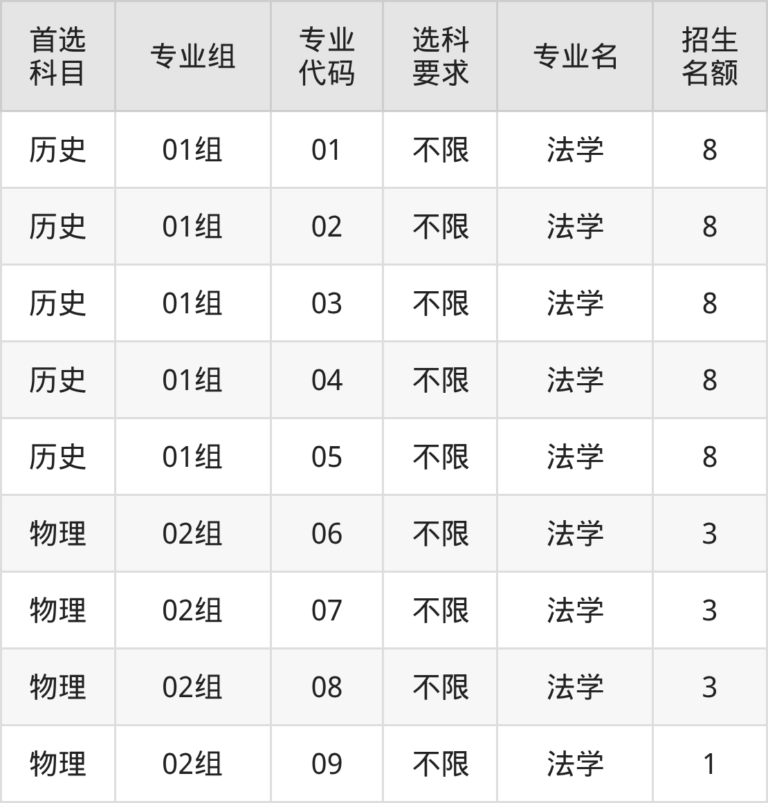 各专业选科要求、招生名额汇总如下: