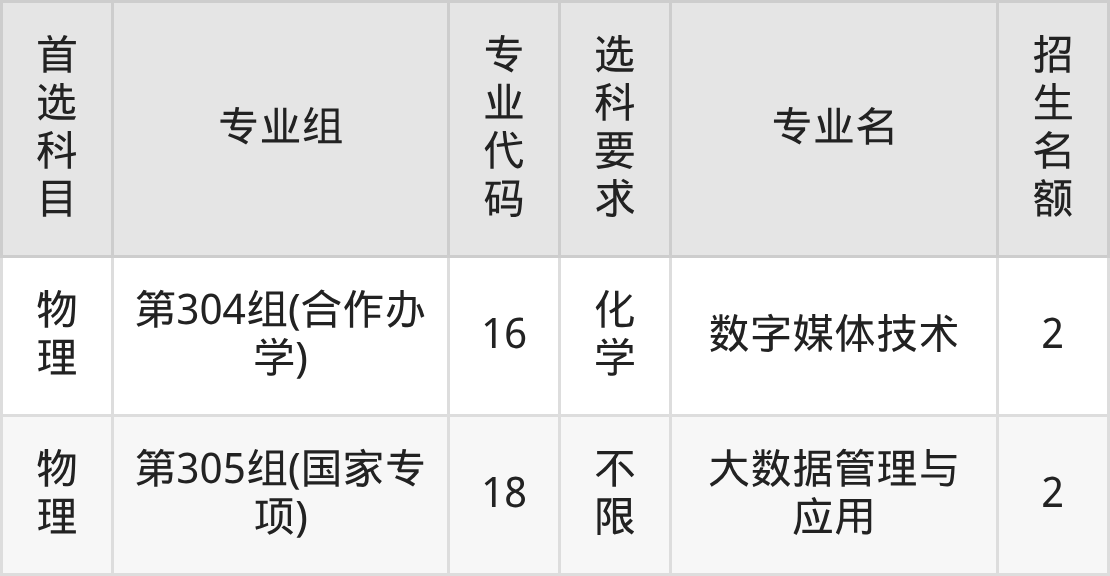 | 物理 | 第303组(合作办学) | 614 | 6939 |