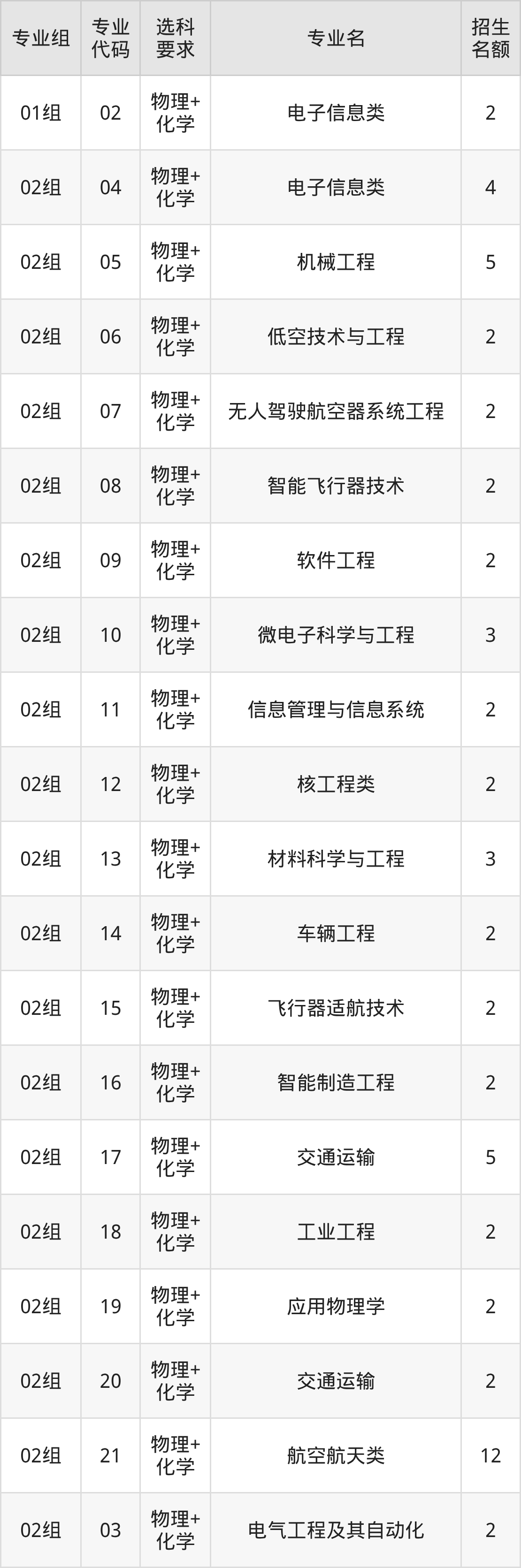 二、南京航空航天大学在天津招生计划及专业