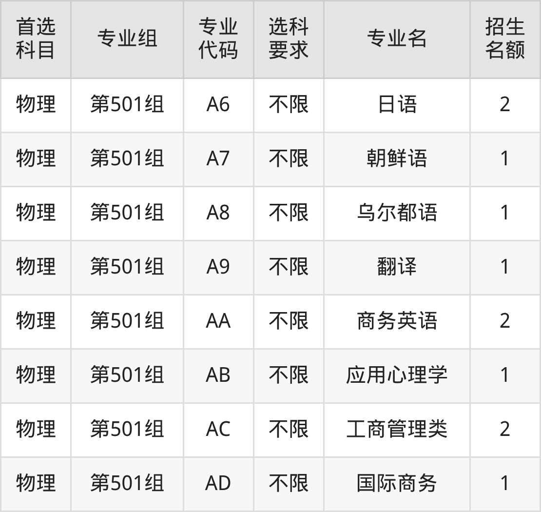 2025年广东外语外贸大学在江西本科批录取最低分:物理类是551分,位次为34332名;历史类是586分,位次为3874名。具体如下表所示: