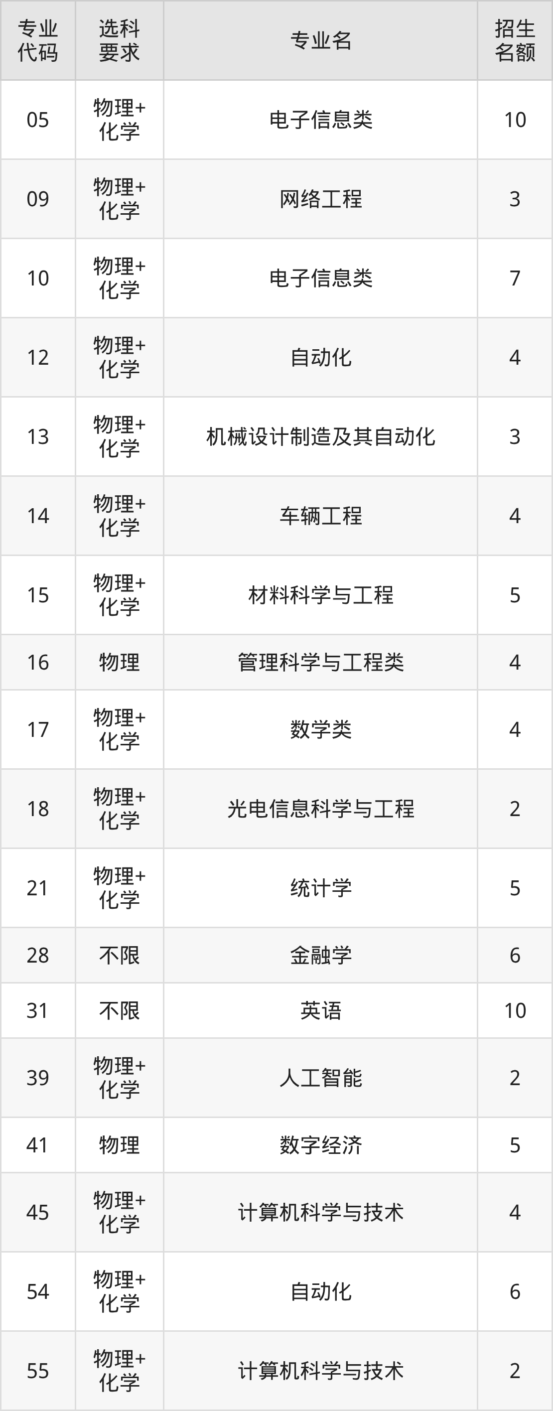 2025年杭州电子科技大学在山东省一段招生中,总计划人数为86人,招生专业有15个,包括电子信息类(17人)、网络工程(3人)、自动化(10人)、机械设计制造及其自动化(3人)等。其中自动化、计算机科学与技术为中外合作办学,学费均是28000元/年。