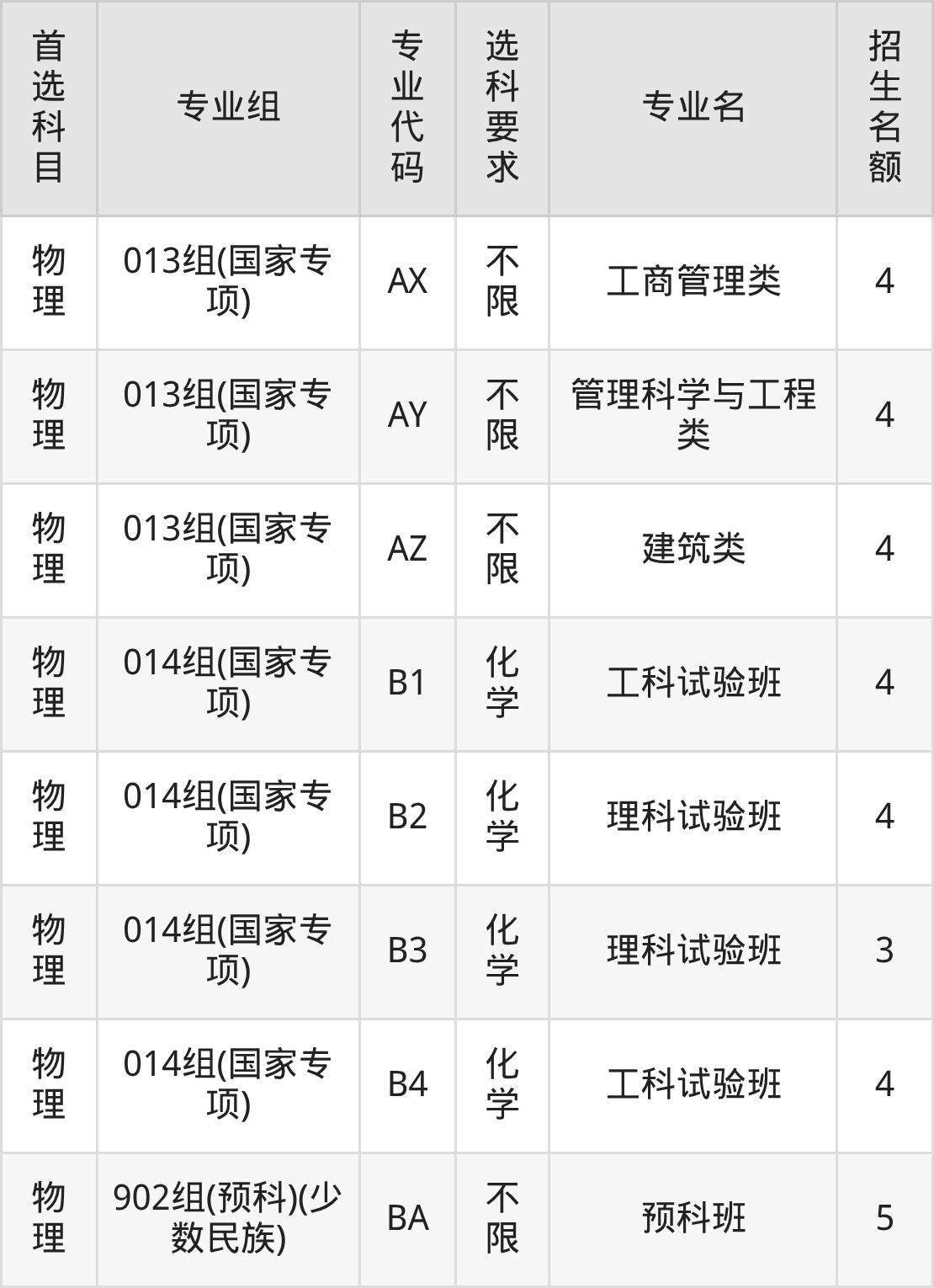 | 物理 | 013组(国家专项) | 539 | 15054 |
