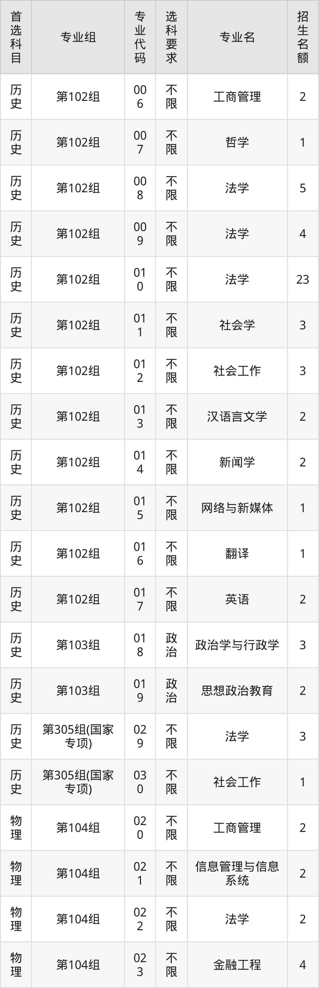 二、中国政法大学在湖南招生计划及专业