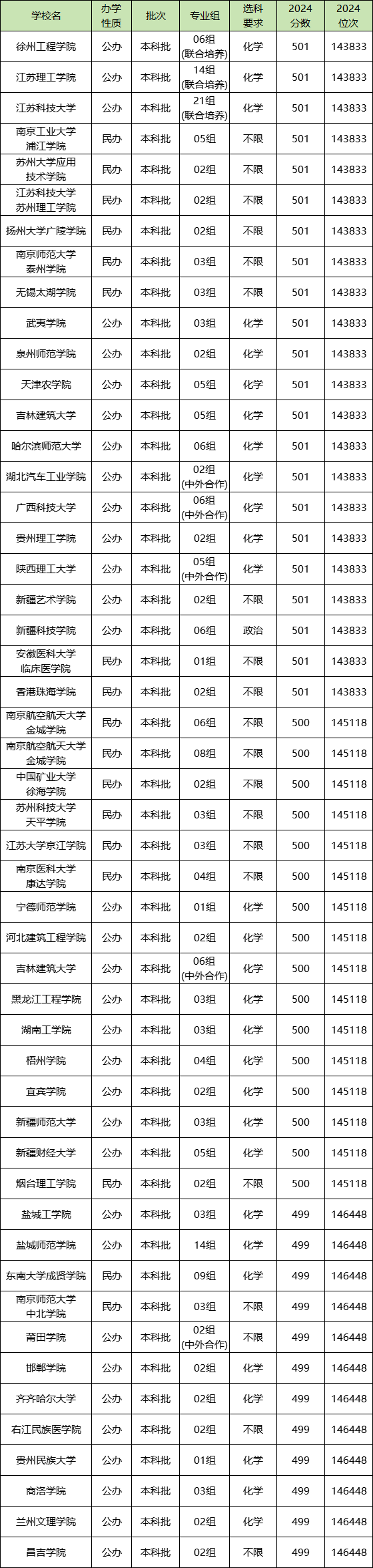 江苏物化政500分左右的考生可以上本科大学,多数为公办大学,其中位于省内的大学有盐城工学院(03组)499分、盐城师范学院(14组)499分等。