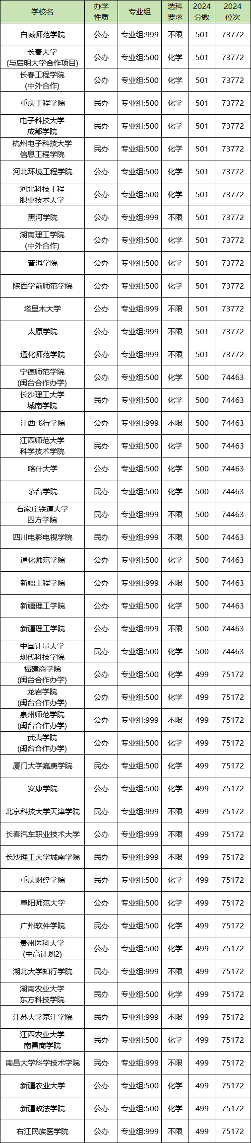 福建物化政500分的考生能上本科大学,其中属于公办的有河北环境工程学院500组(501分)、新疆工程学院999组(500分)、新疆政法学院500组(499分)等。具体名单如下表所示: