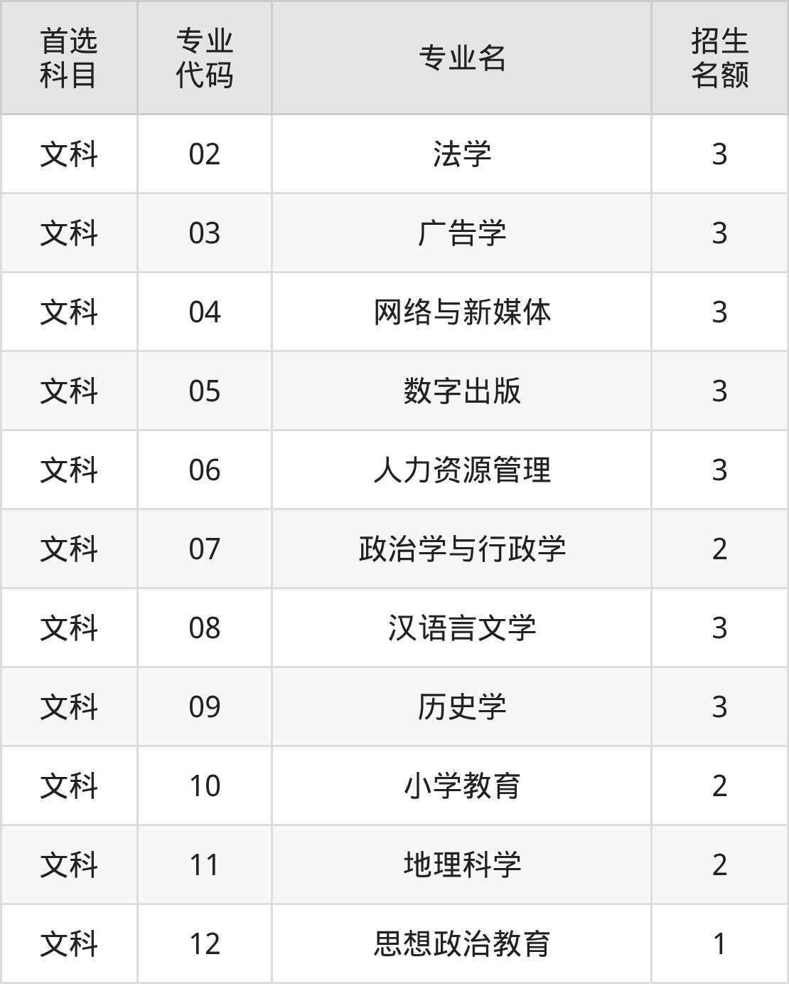 各专业选科要求、招生名额汇总如下: