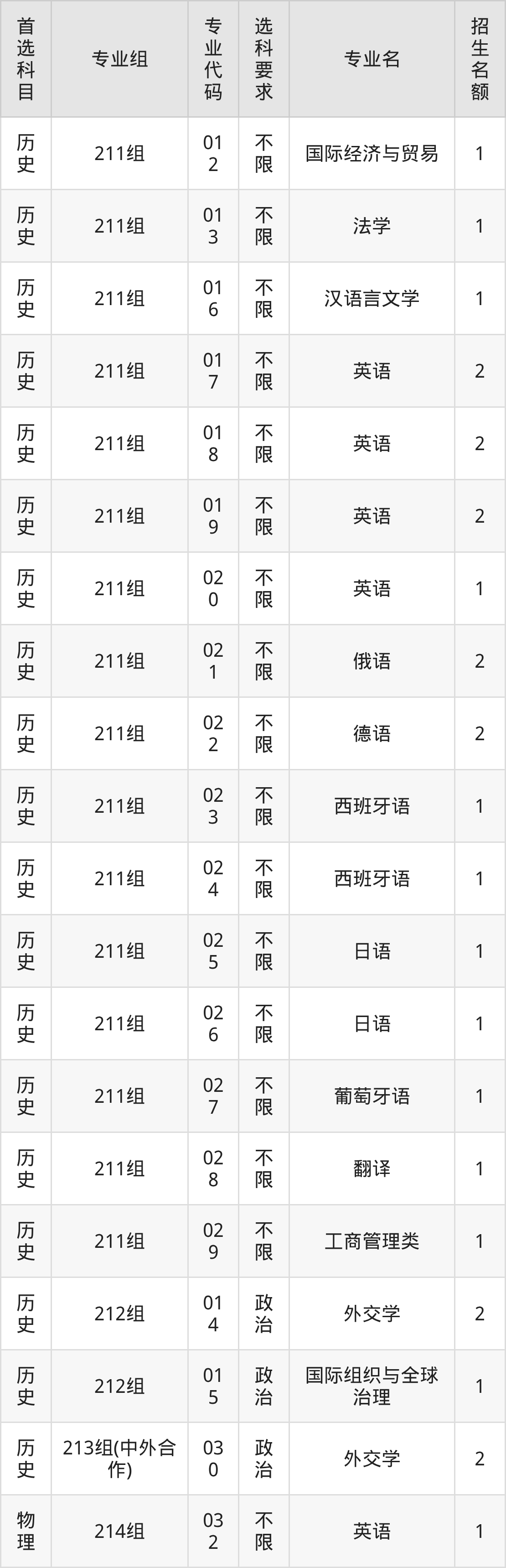 二、北京外国语大学在广东招生计划及专业