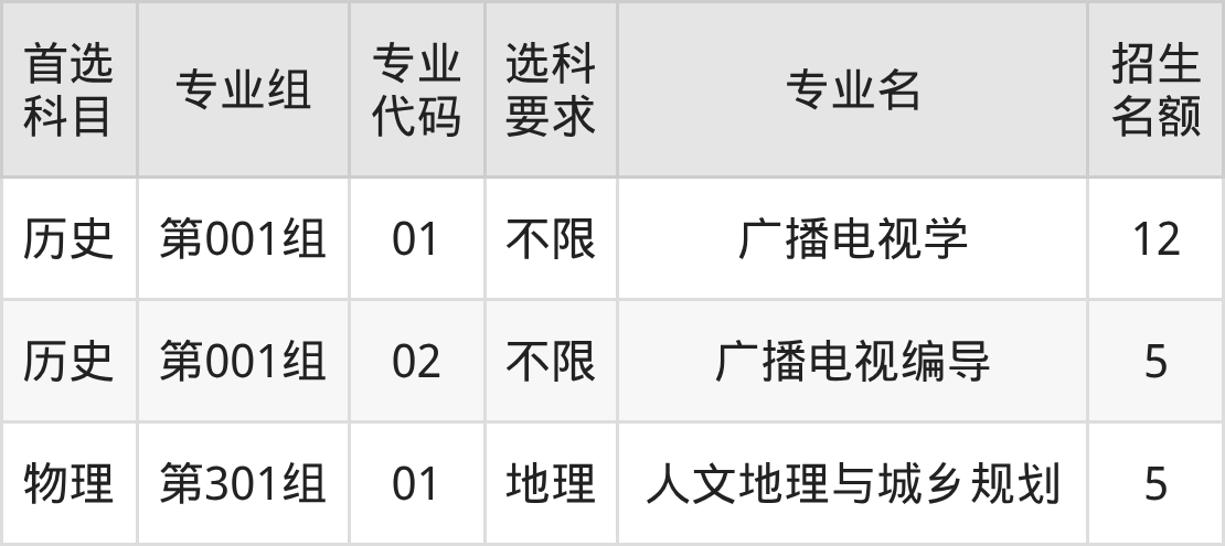 各专业选科要求、招生名额汇总如下: