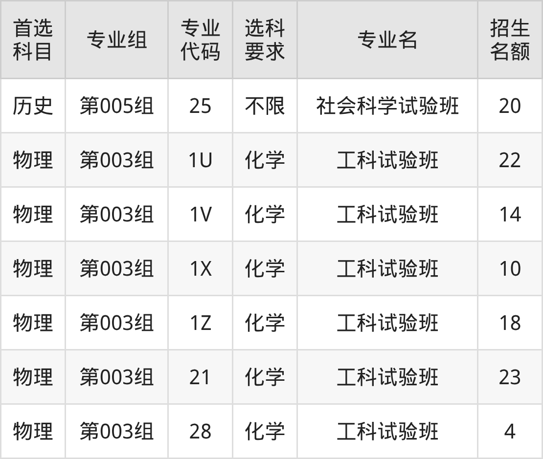 各专业选科要求、招生名额汇总如下: