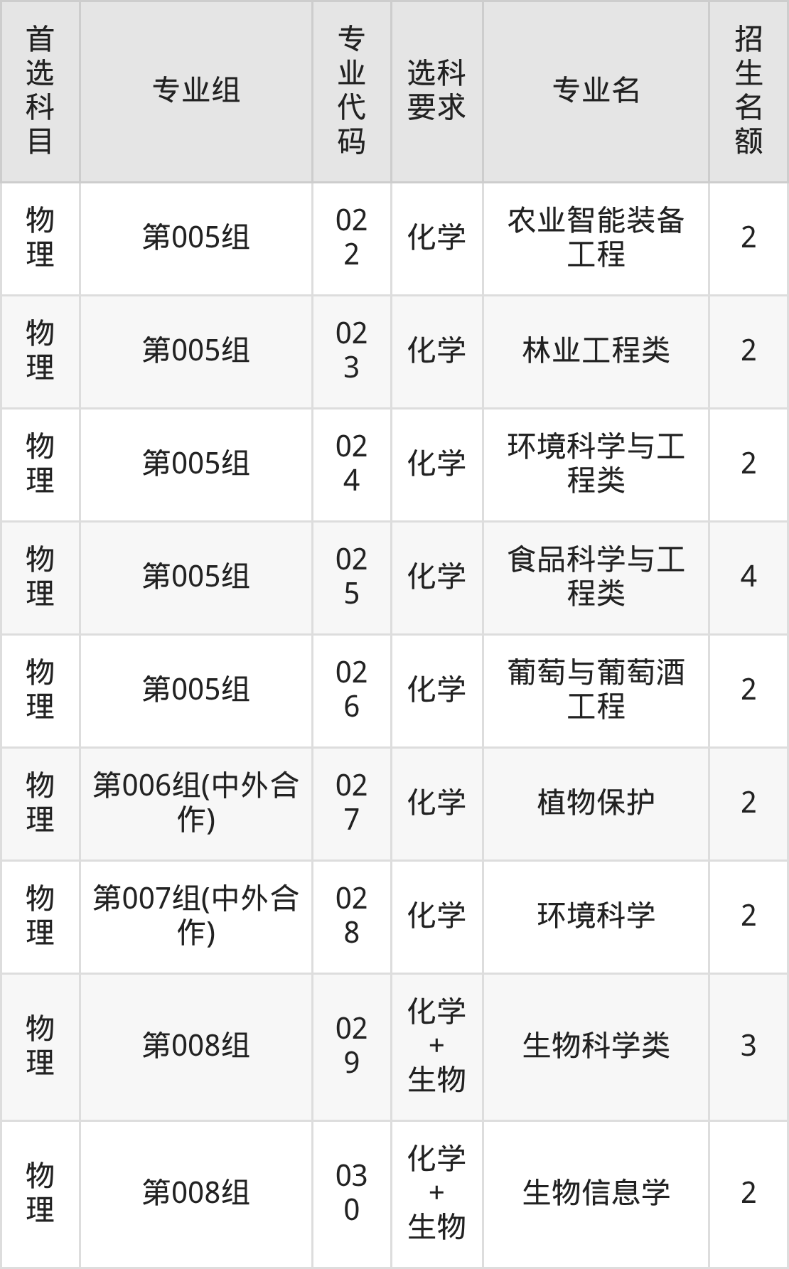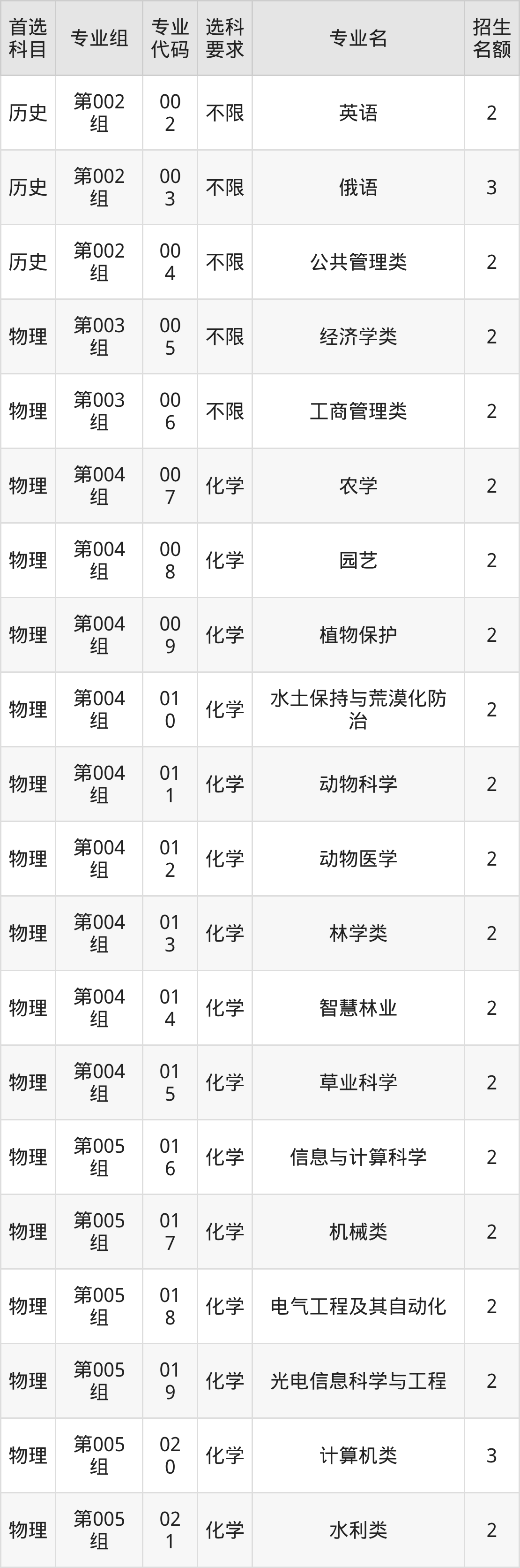 各专业选科要求、招生名额汇总如下: