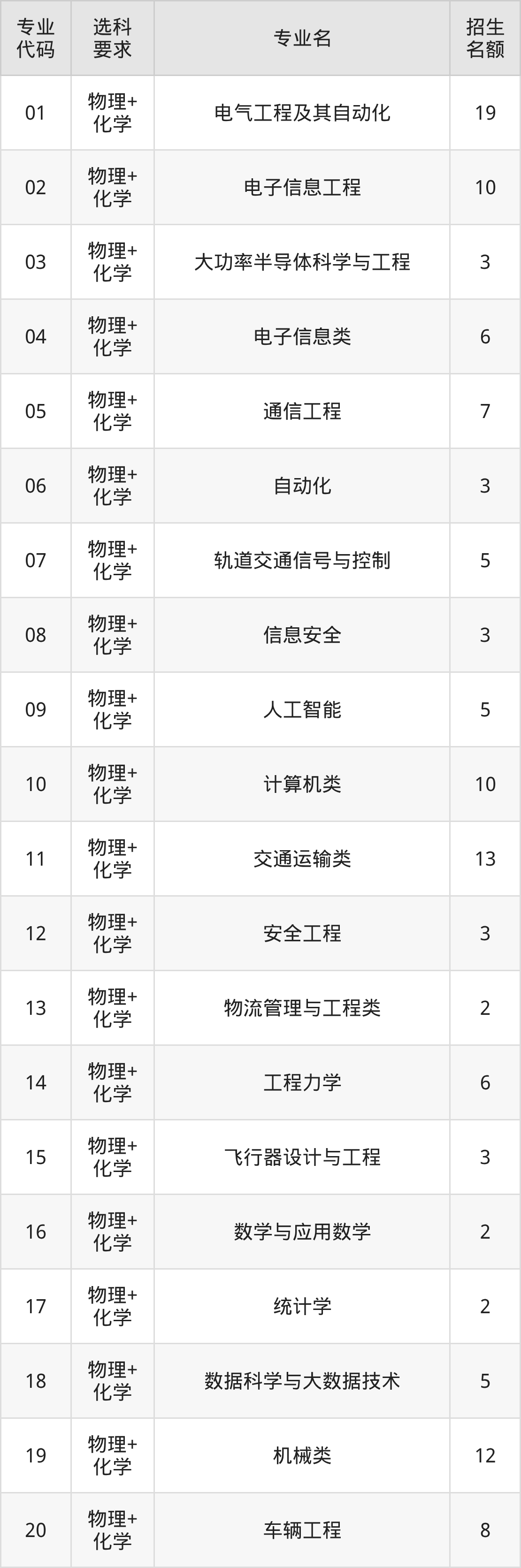 二、西南交通大学在山东招生计划及专业