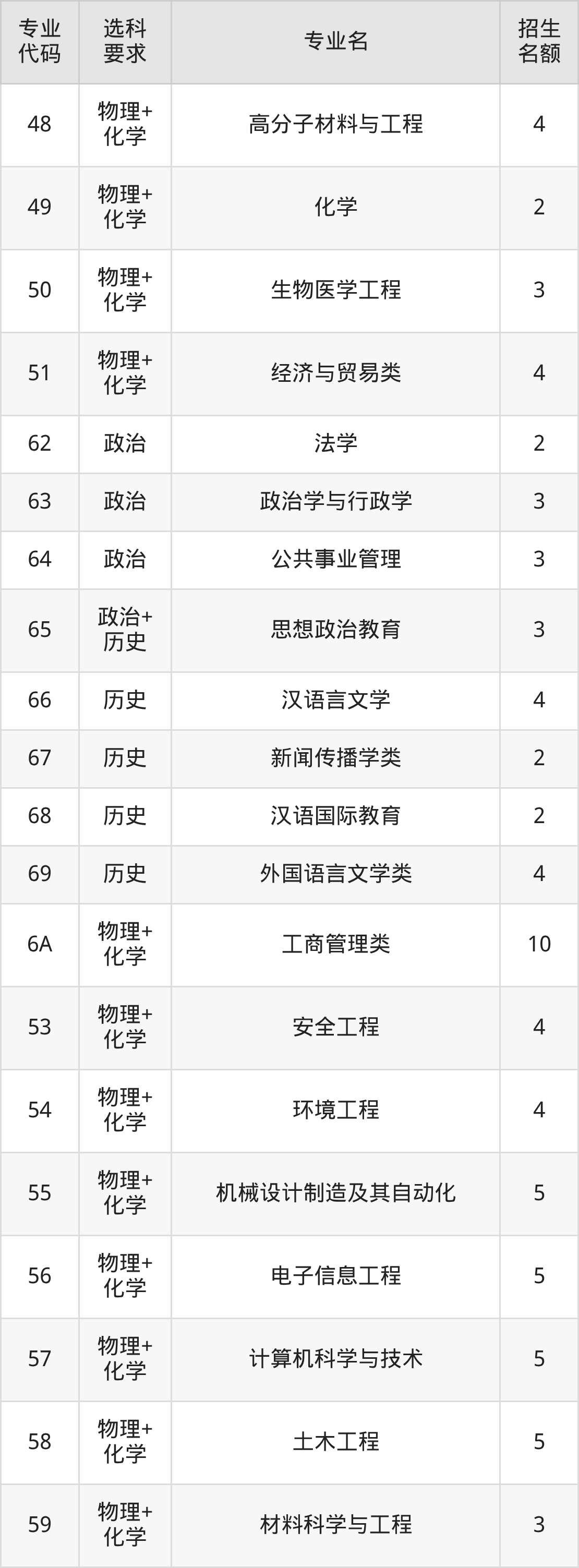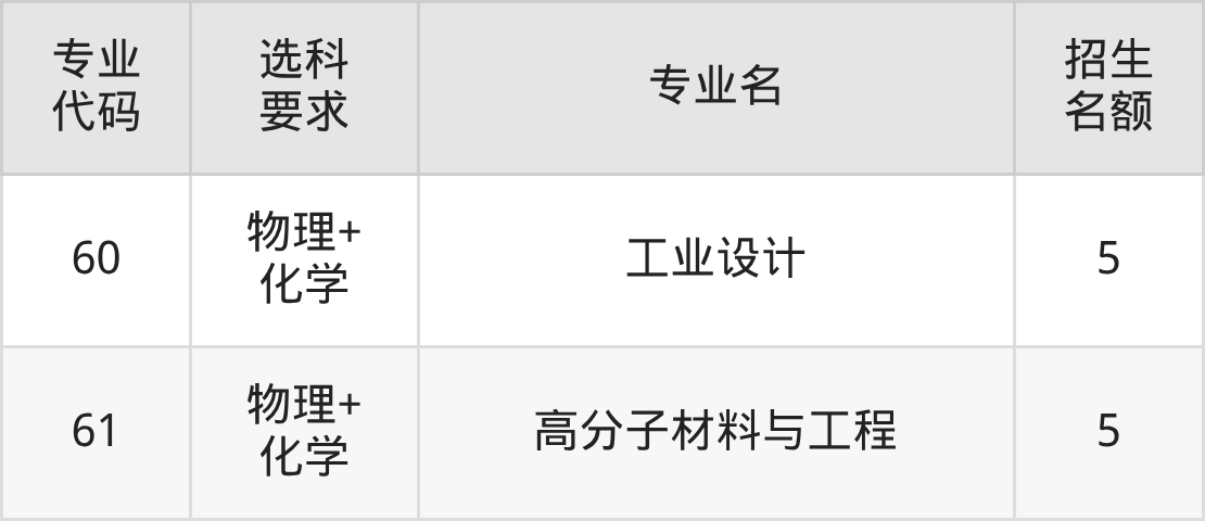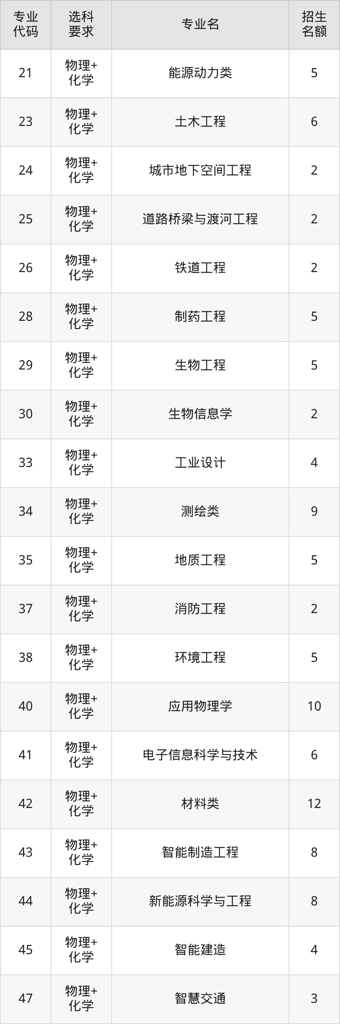 各专业选科要求、招生名额汇总如下: