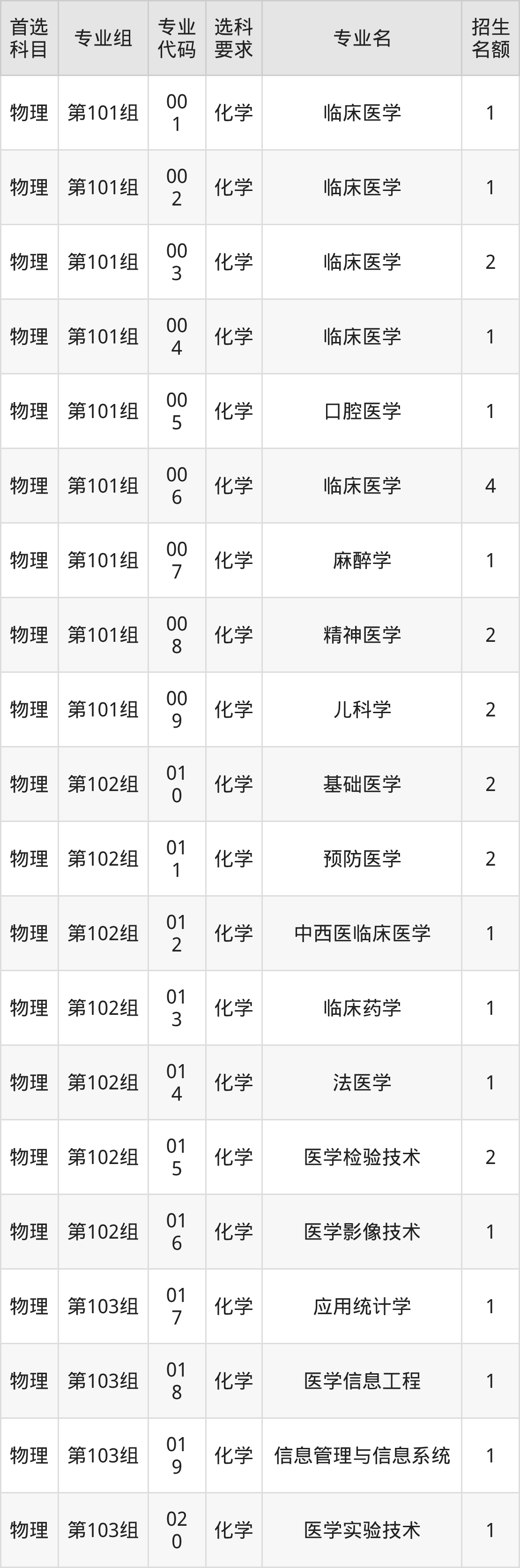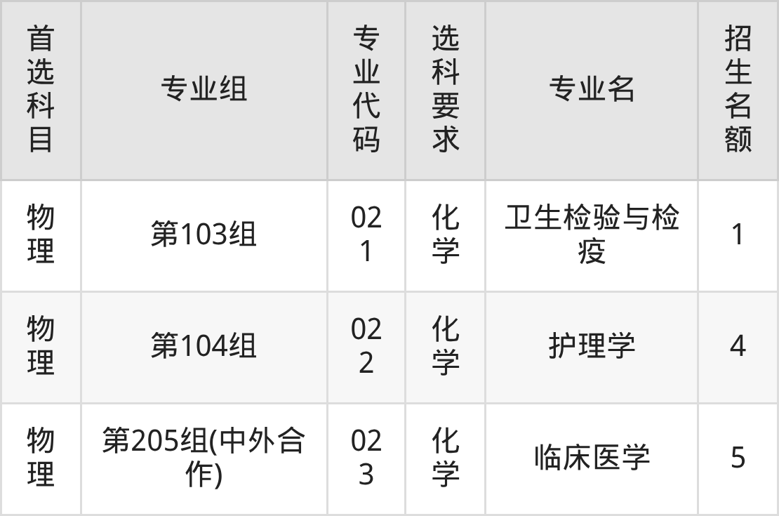 二、重庆医科大学在湖南招生计划及专业