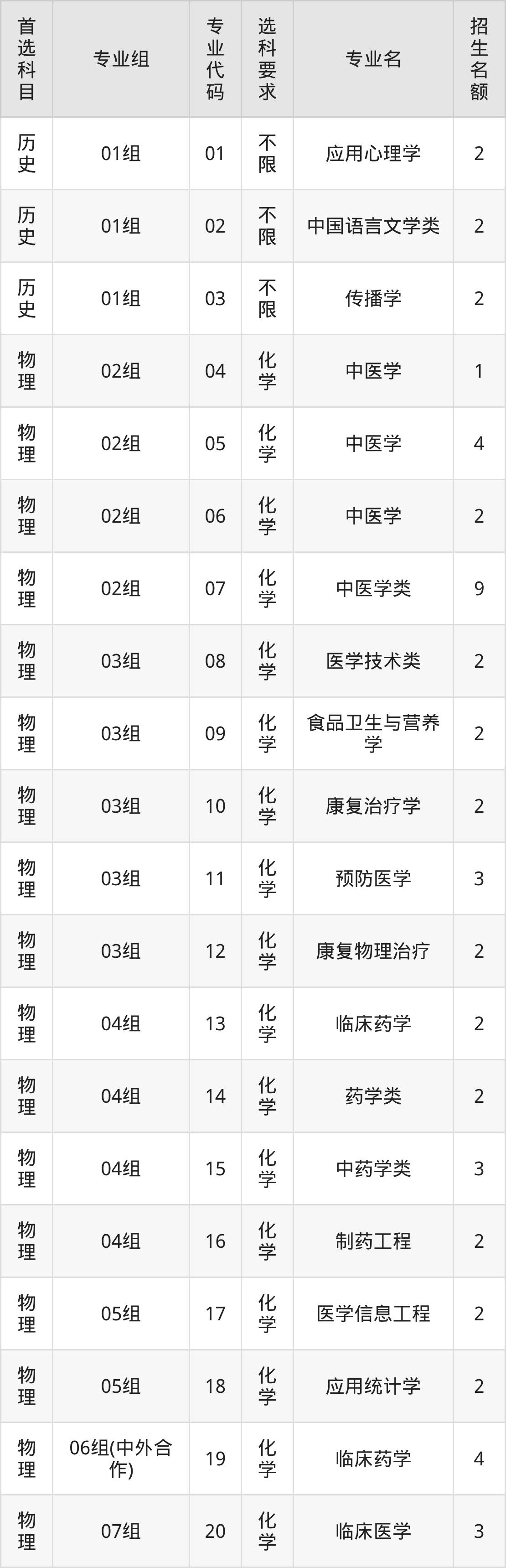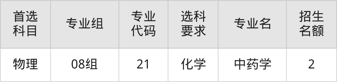 各专业选科要求、招生名额汇总如下: