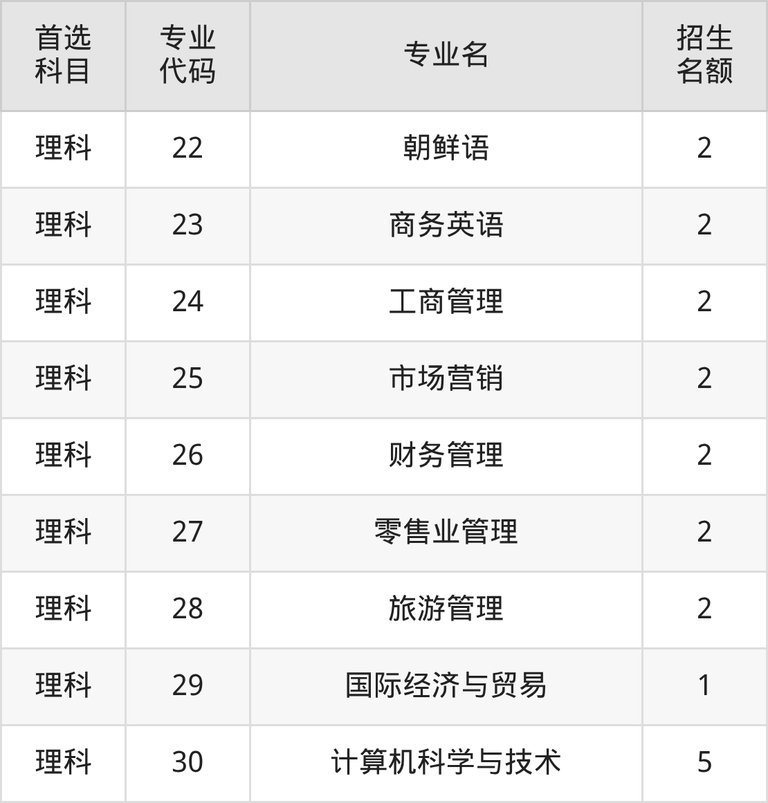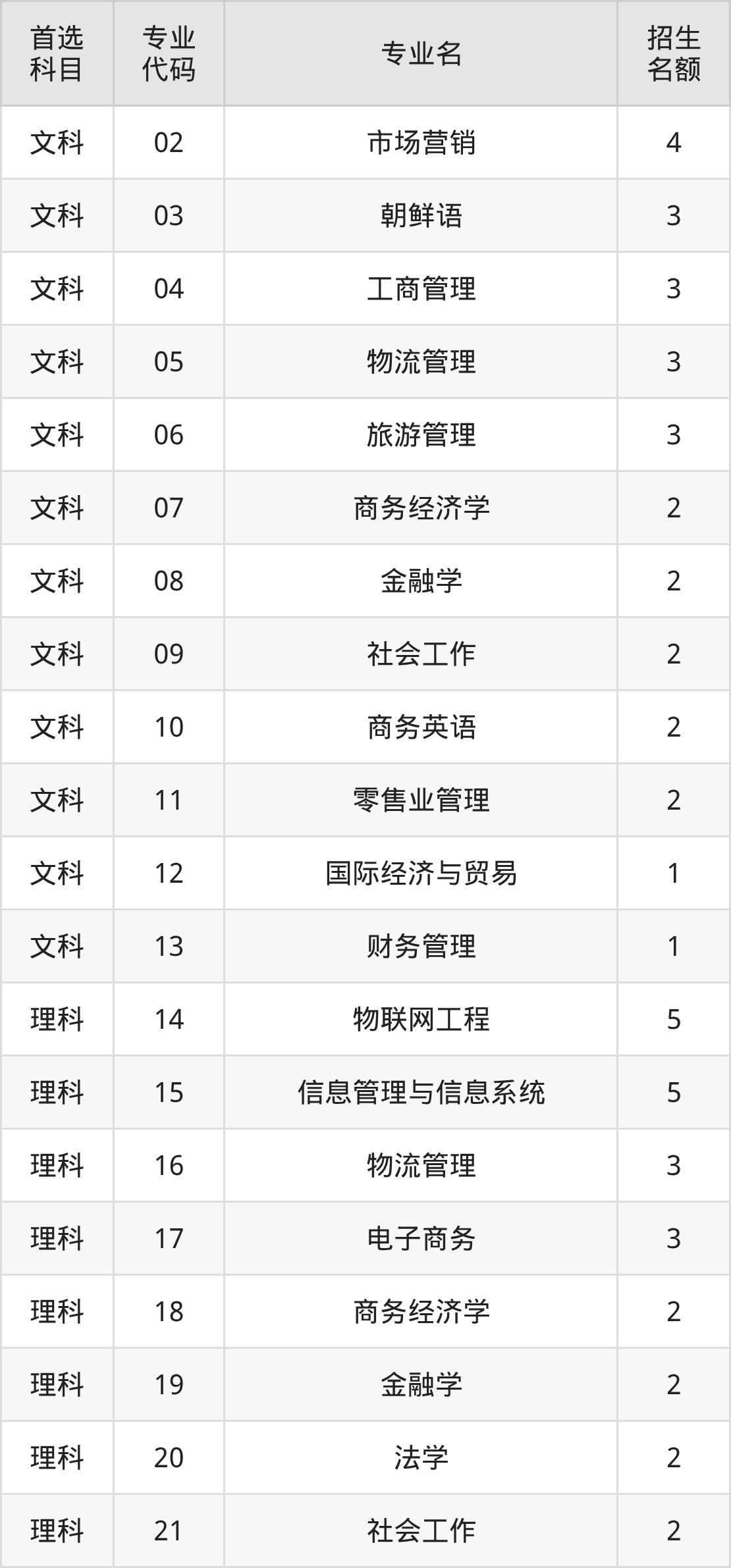 2025年上海商学院在新疆维吾尔自治区本科二批招生中,总计划人数为72人,招生专业有17个,包括市场营销(6人)、朝鲜语(5人)、工商管理(5人)、物流管理(6人)等。