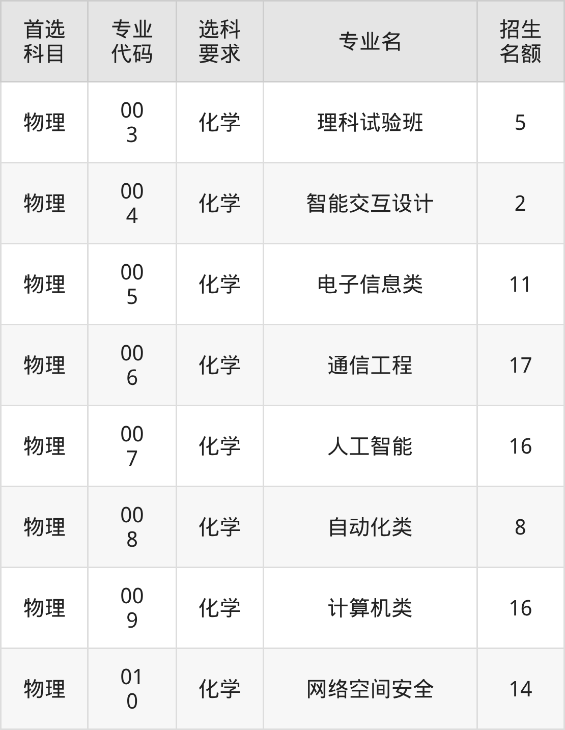 2025年北京邮电大学在福建省本科批招生中,总计划人数为89人,招生专业有8个,包括理科试验班(5人)、智能交互设计(2人)、电子信息类(11人)、通信工程(17人)等。