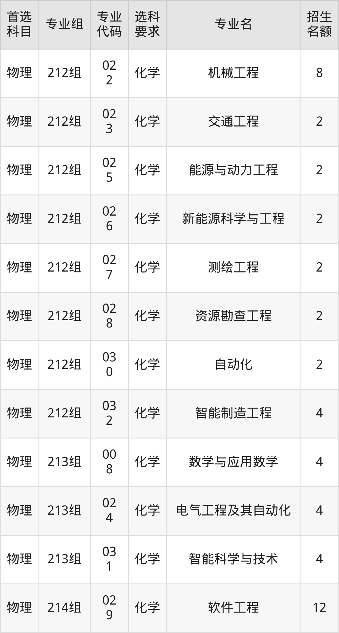各专业选科要求、招生名额汇总如下: