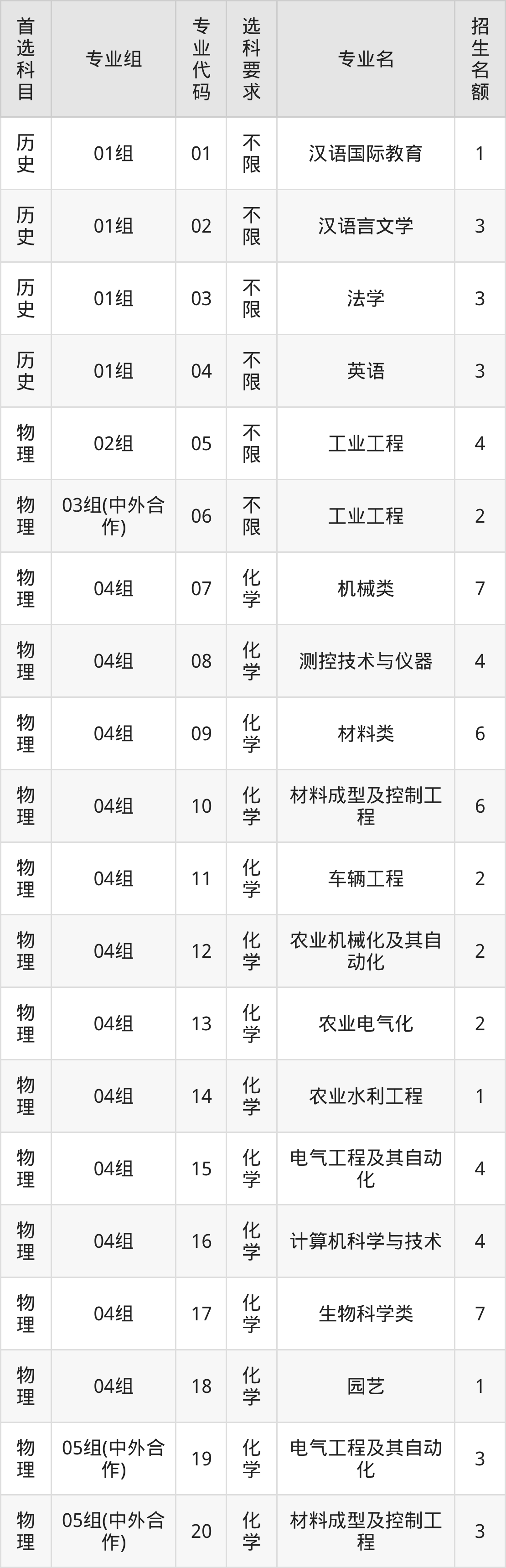 2025年河南科技大学在江苏省本科批招生中,总计划人数为83人,招生专业有22个,包括汉语国际教育(1人)、汉语言文学(3人)、法学(3人)、英语(3人)等。其中工业工程、电气工程及其自动化、材料成型及控制工程为中外合作办学,学费依次是18000元、28000元。