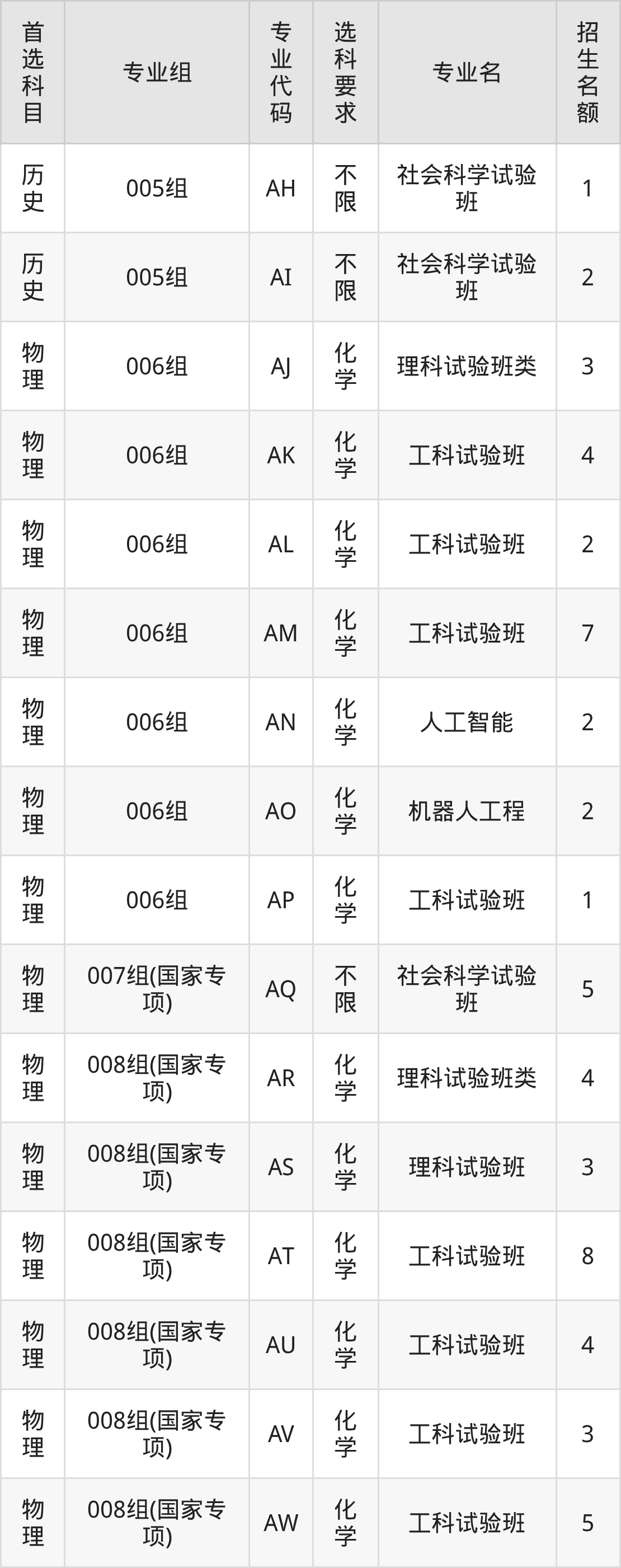 | 物理 | 007组(国家专项) | 623 | 1340 |
