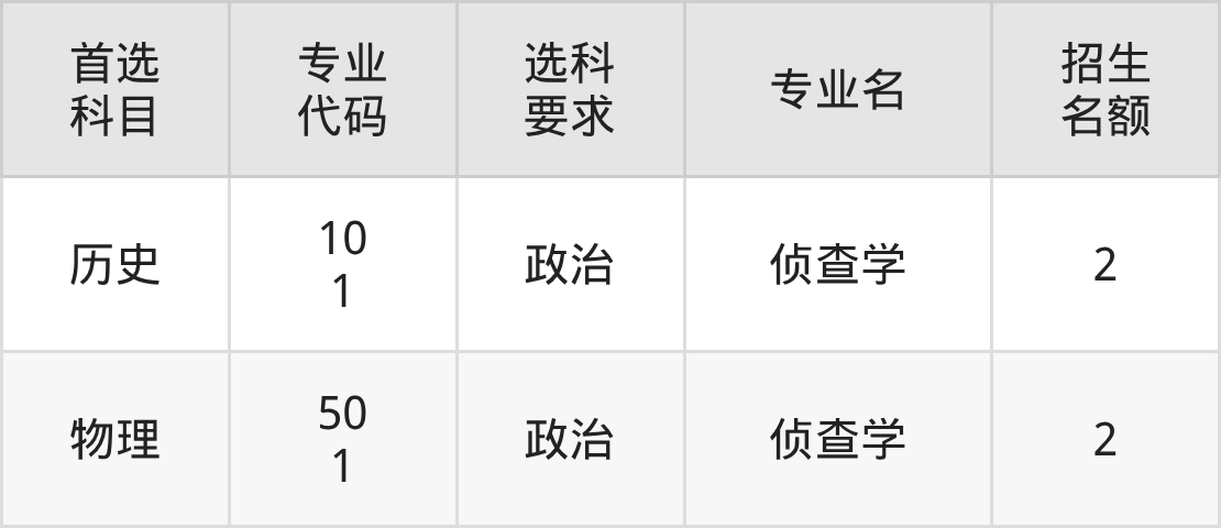 2025年西南政法大学在贵州省本科提前批A招生中,总计划人数为4人,招生专业有1个,包括侦查学(4人)等。