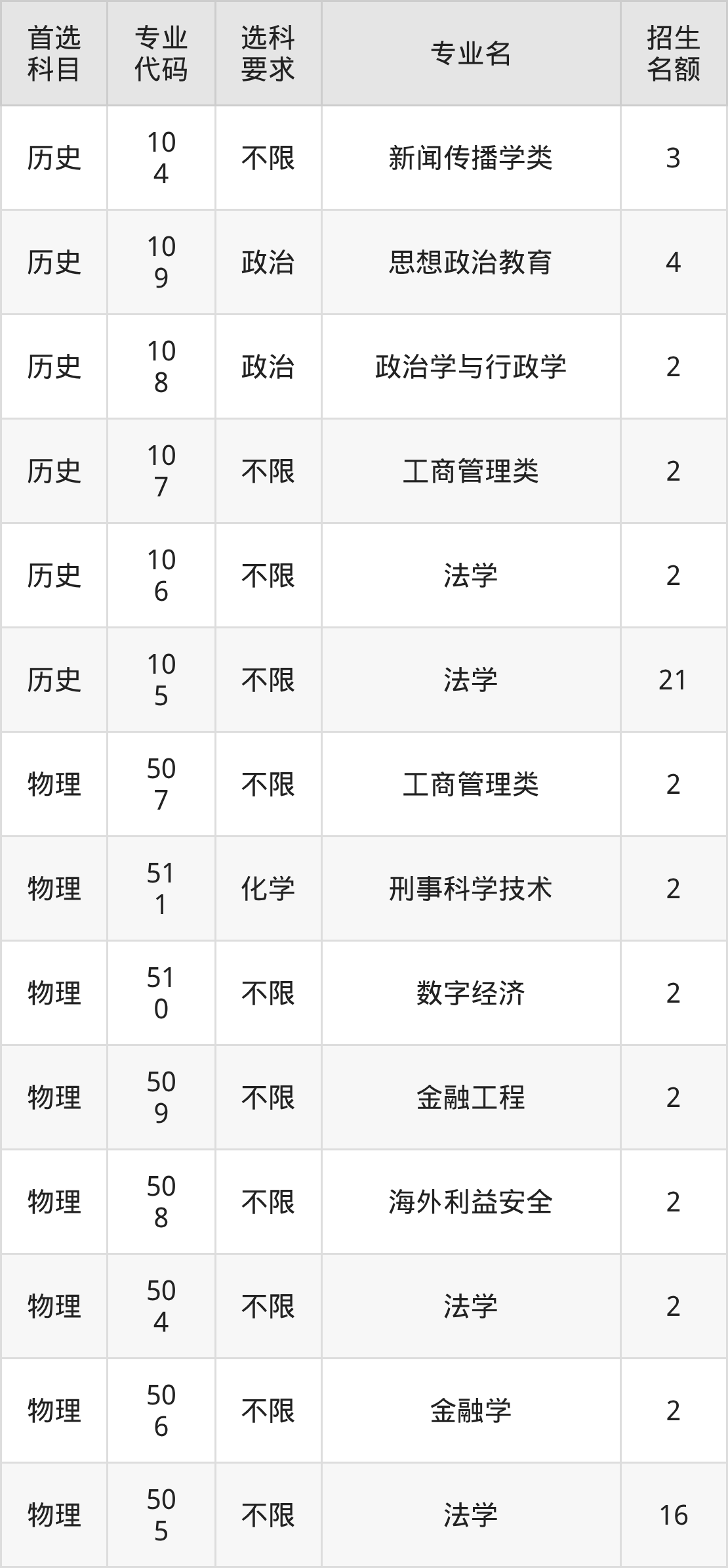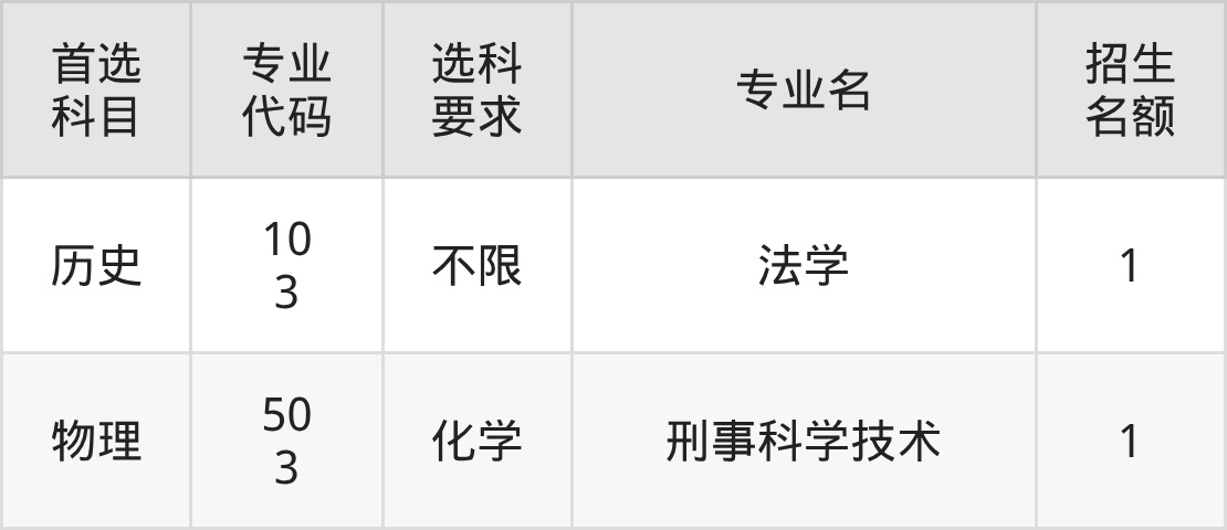 各专业选科要求、招生名额汇总如下: