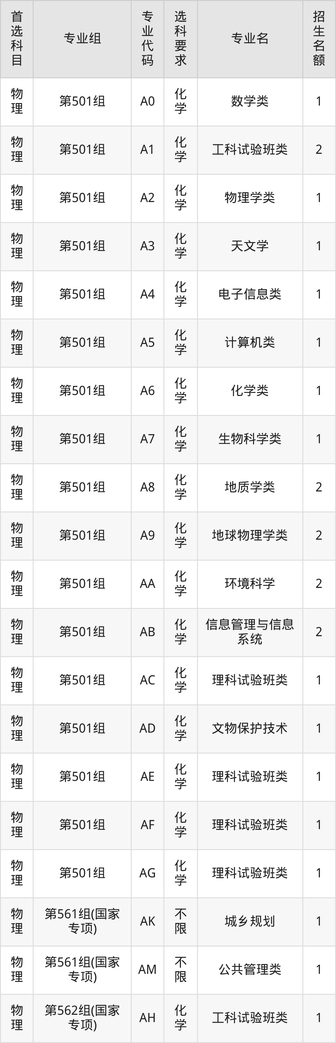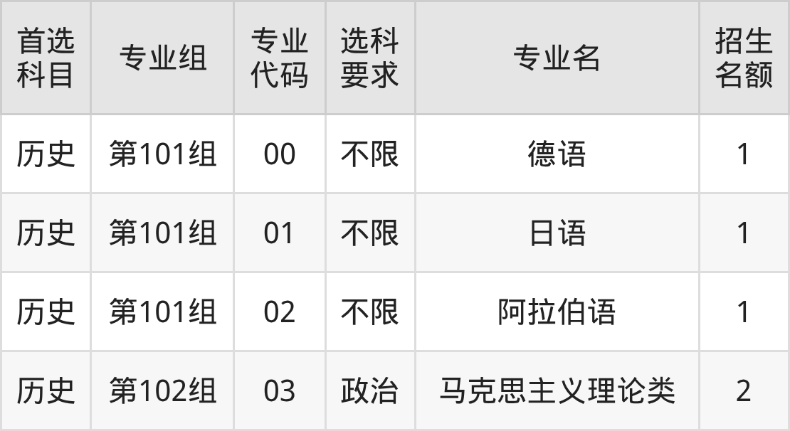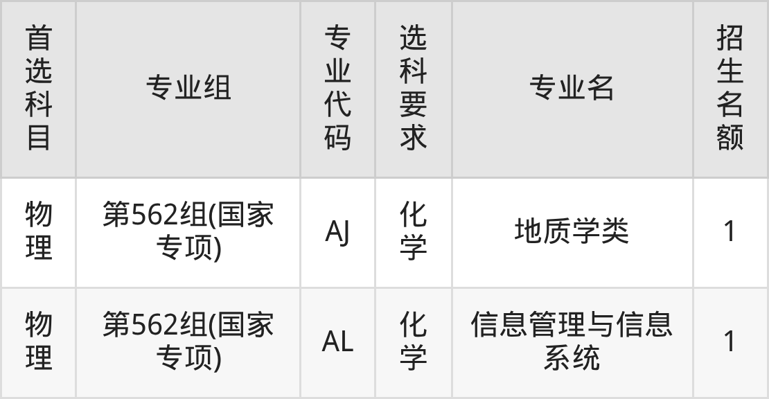 各专业选科要求、招生名额汇总如下: