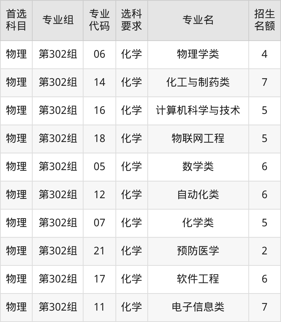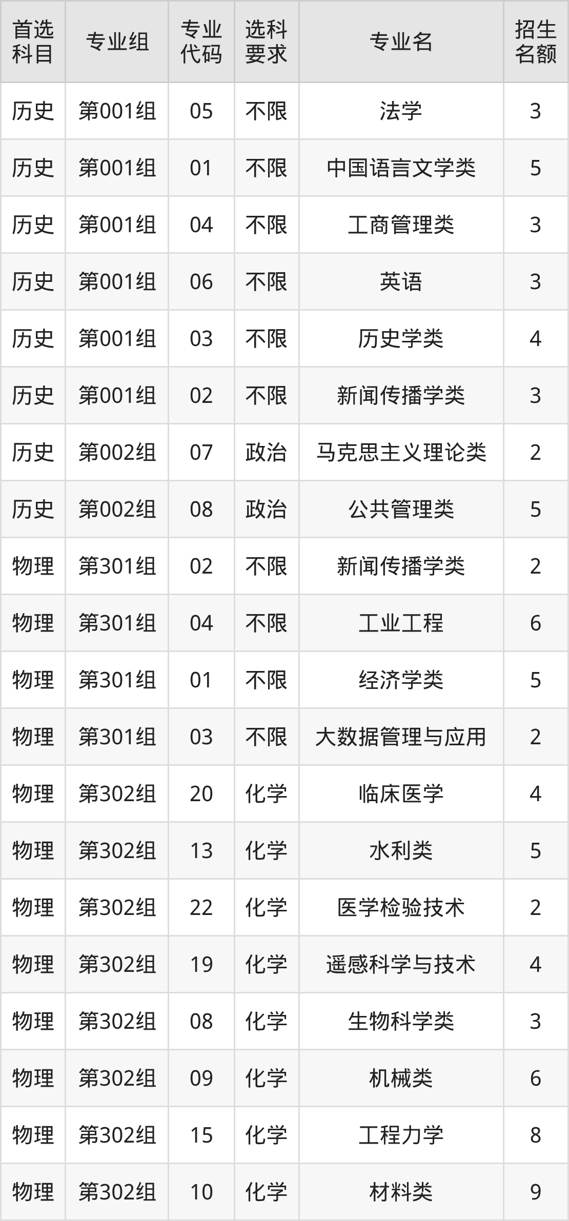 各专业选科要求、招生名额汇总如下: