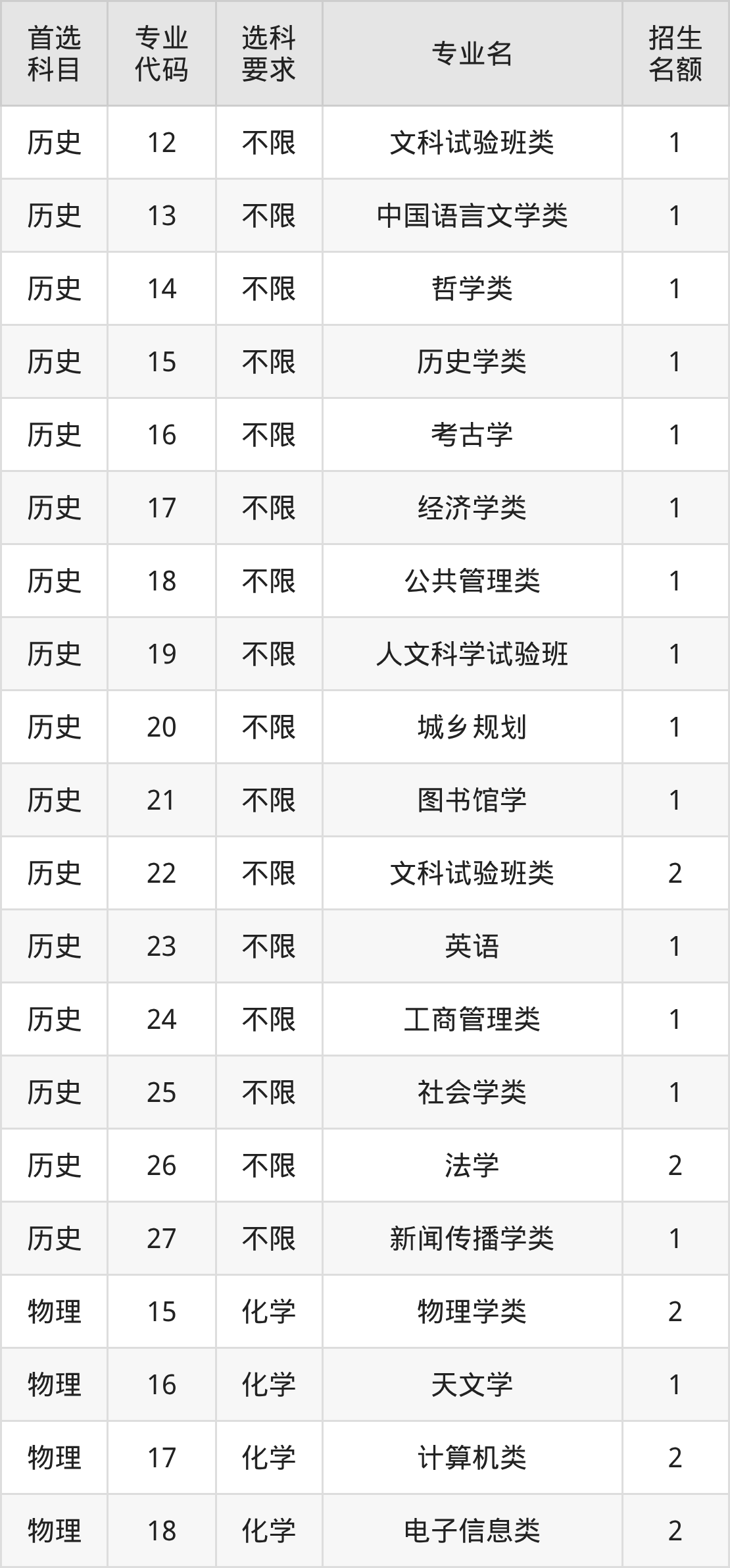 二、北京大学在安徽招生计划及专业