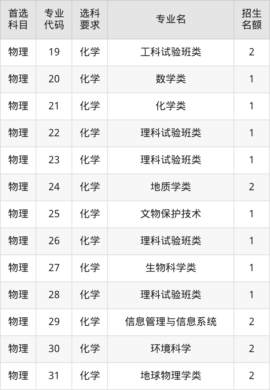 各专业选科要求、招生名额汇总如下: