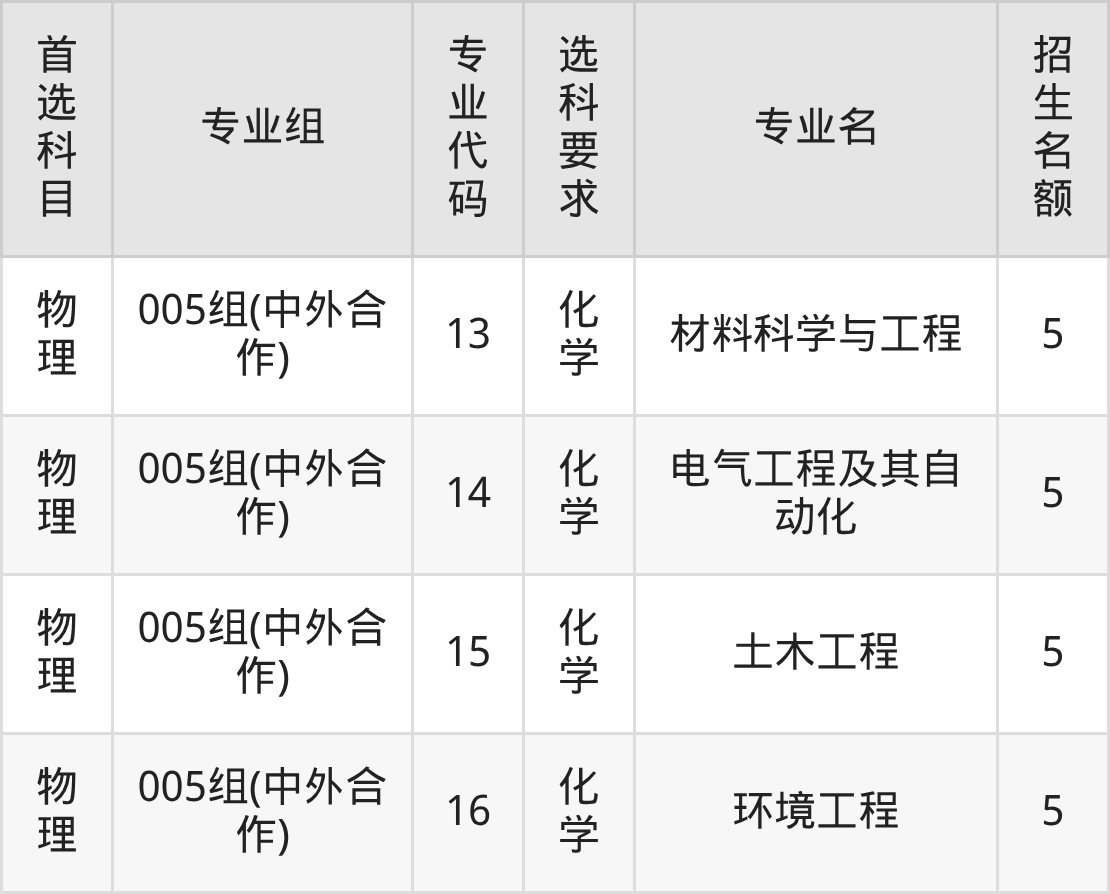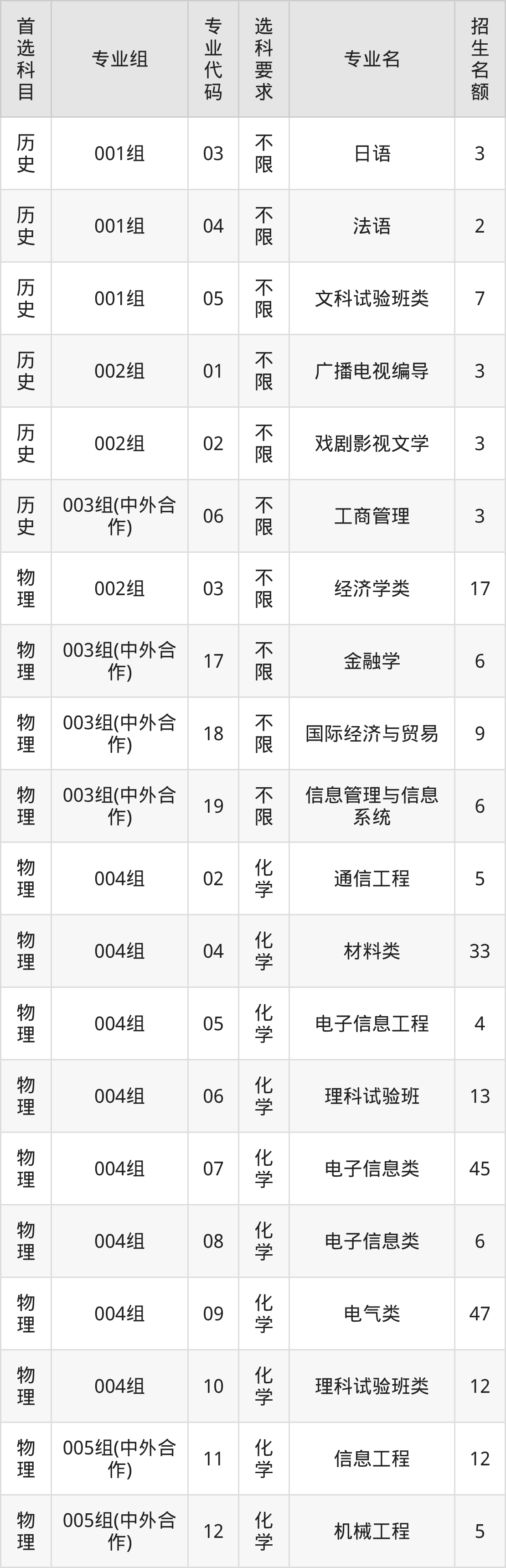 各专业选科要求、招生名额汇总如下: