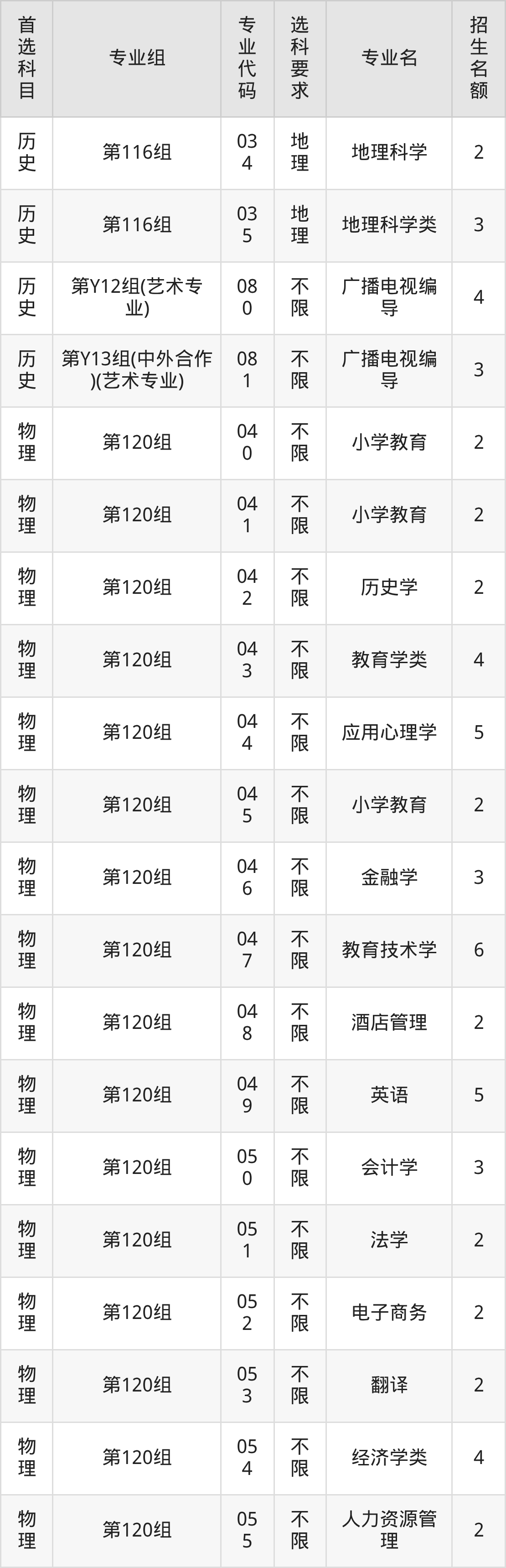 2025年海南师范大学在湖南省本科批招生中,总计划人数为222人,招生专业有40个,包括小学教育(12人)、汉语言文学(15人)、历史学(5人)、教育学类(8人)等。其中广播电视编导为中外合作办学,学费是60000元/年。
