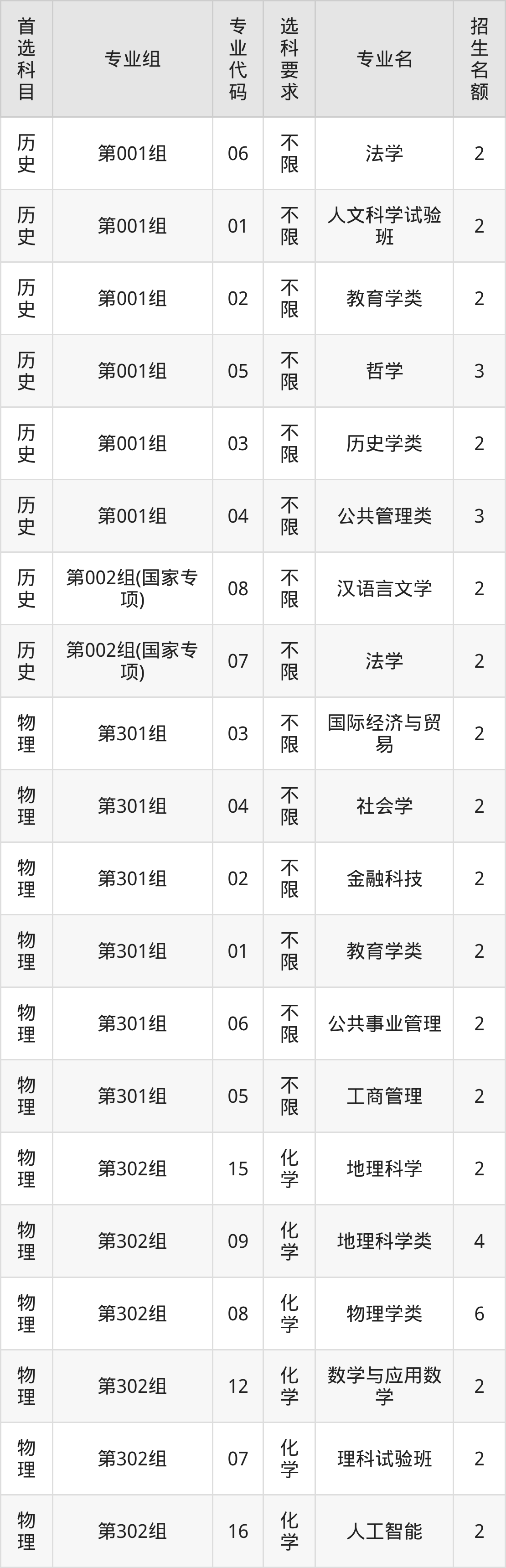 2025年北京师范大学在山西省本科批招生中,总计划人数为65人,招生专业有23个,包括法学(4人)、人文科学试验班(2人)、教育学类(4人)、哲学(3人)等。