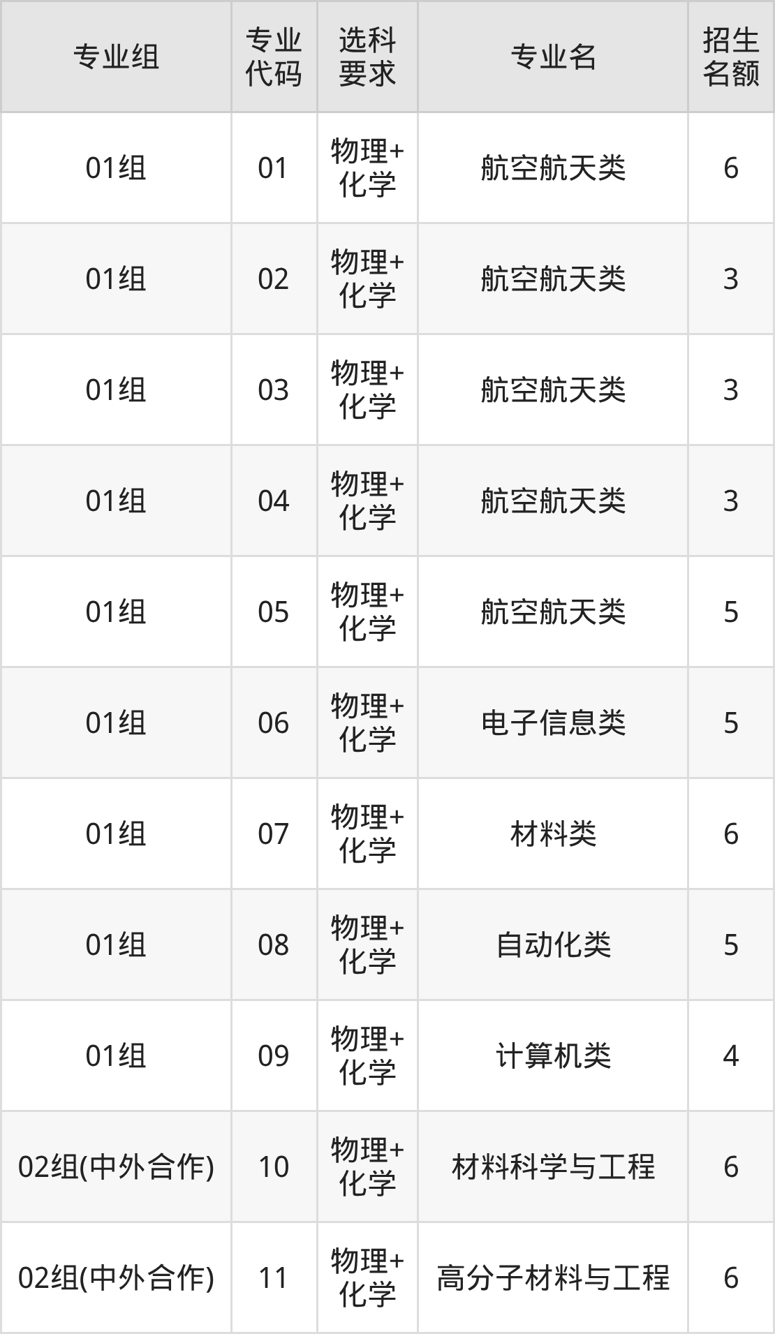 各专业选科要求、招生名额汇总如下: