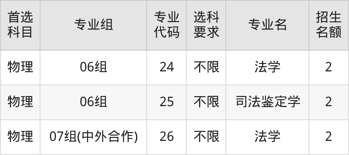 二、西南政法大学在江苏招生计划及专业