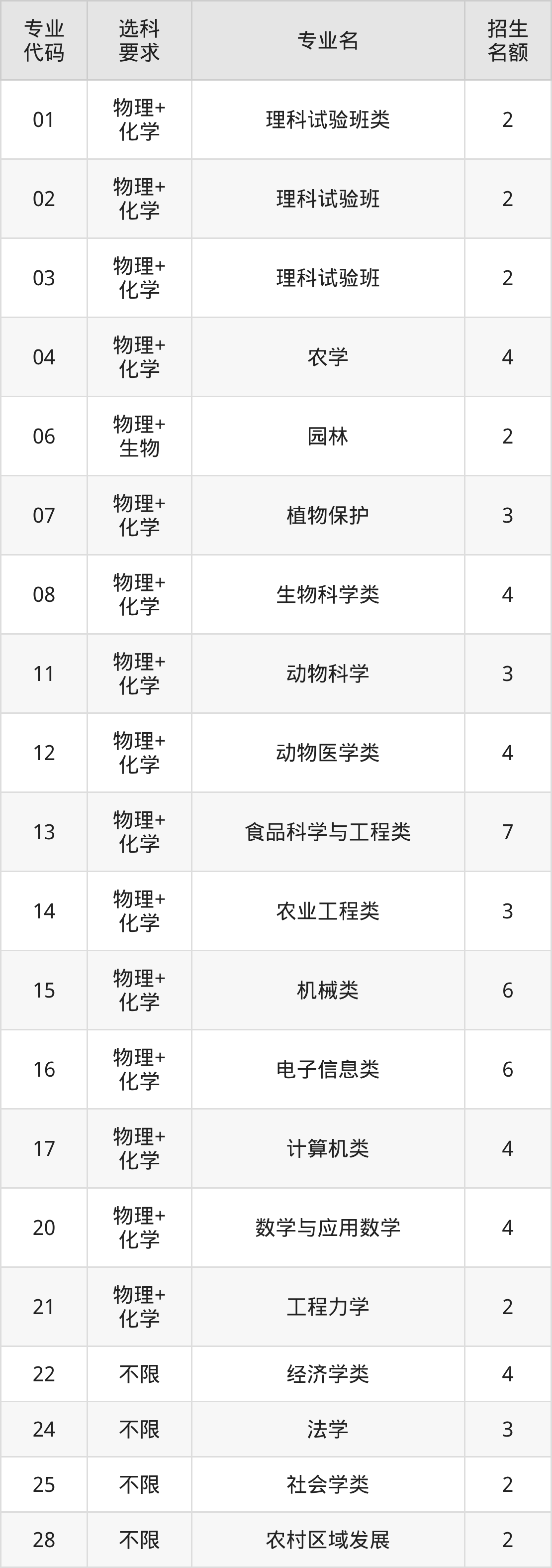 2025年中国农业大学在山东省一段招生中,总计划人数为584人,招生专业有39个,包括理科试验班类(2人)、理科试验班(4人)、农学(4人)、园林(2人)等。其中国际经济与贸易、传播学、农林经济管理为中外合作办学,学费依次是100000元、88000元。