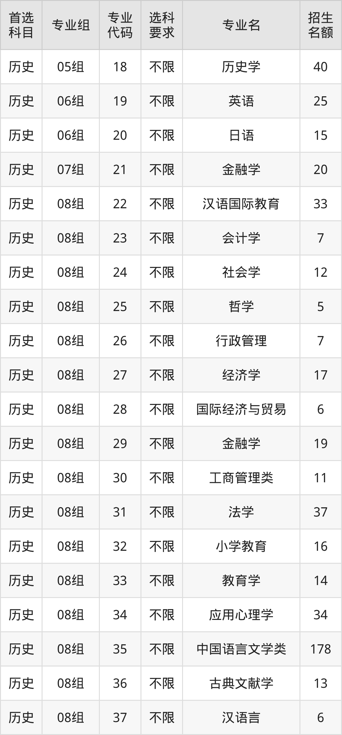 | 历史 | 10组(中外学分互认) | 591 | 8106 |